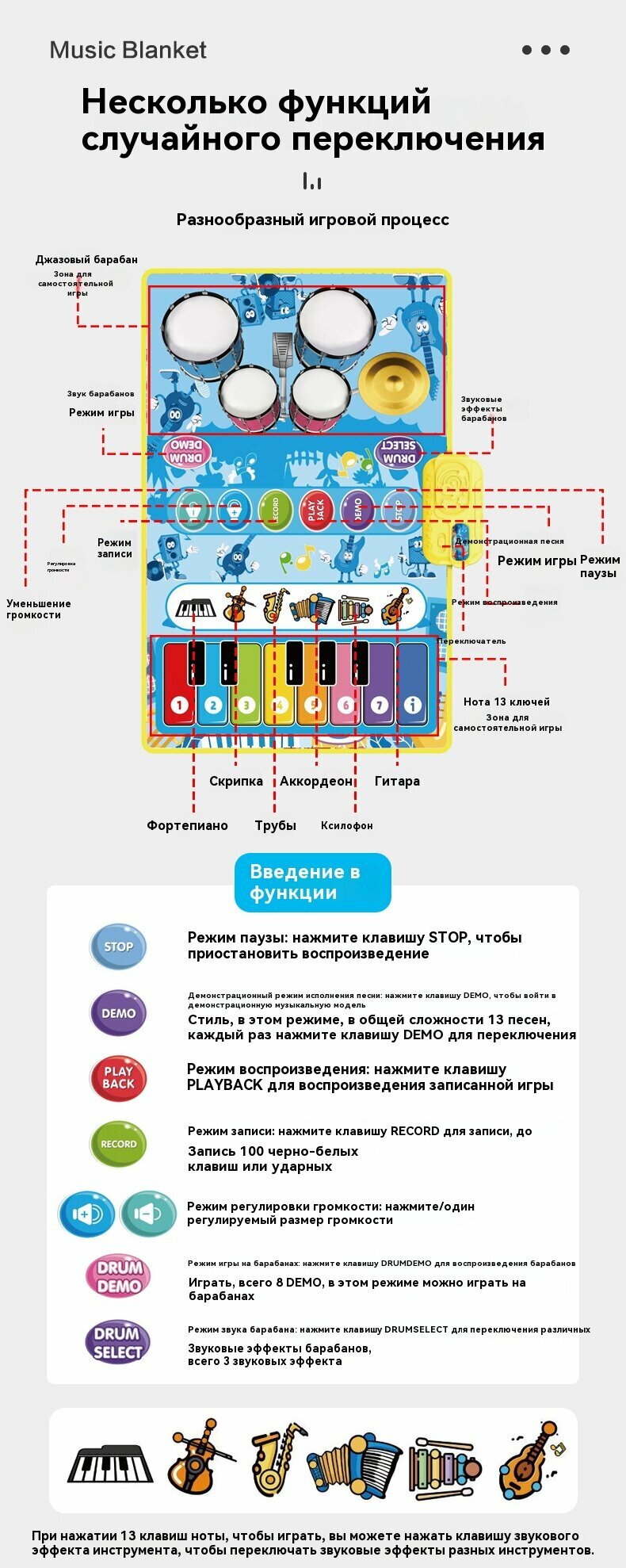 Джазовый барабан Музыкальный коврик, Музыкальное просвещение интересное: