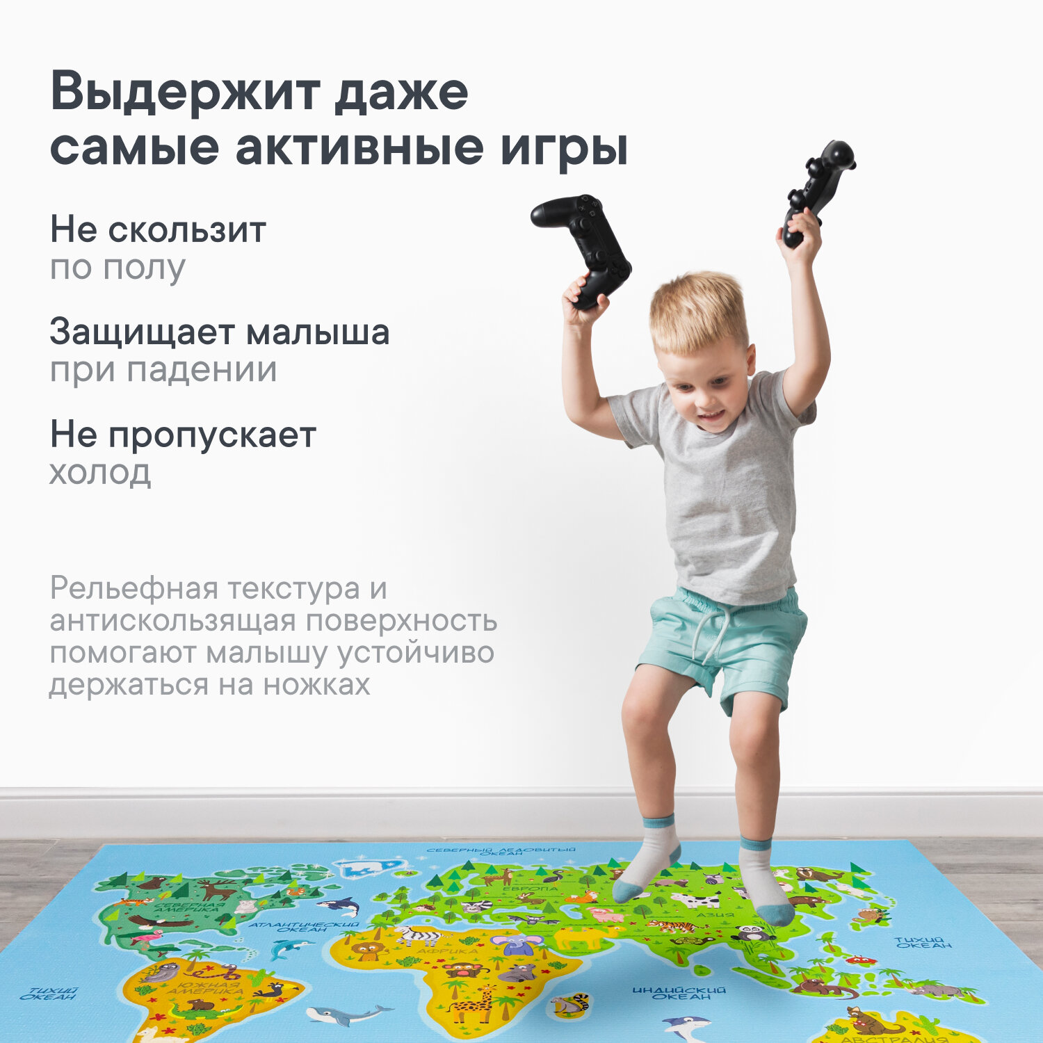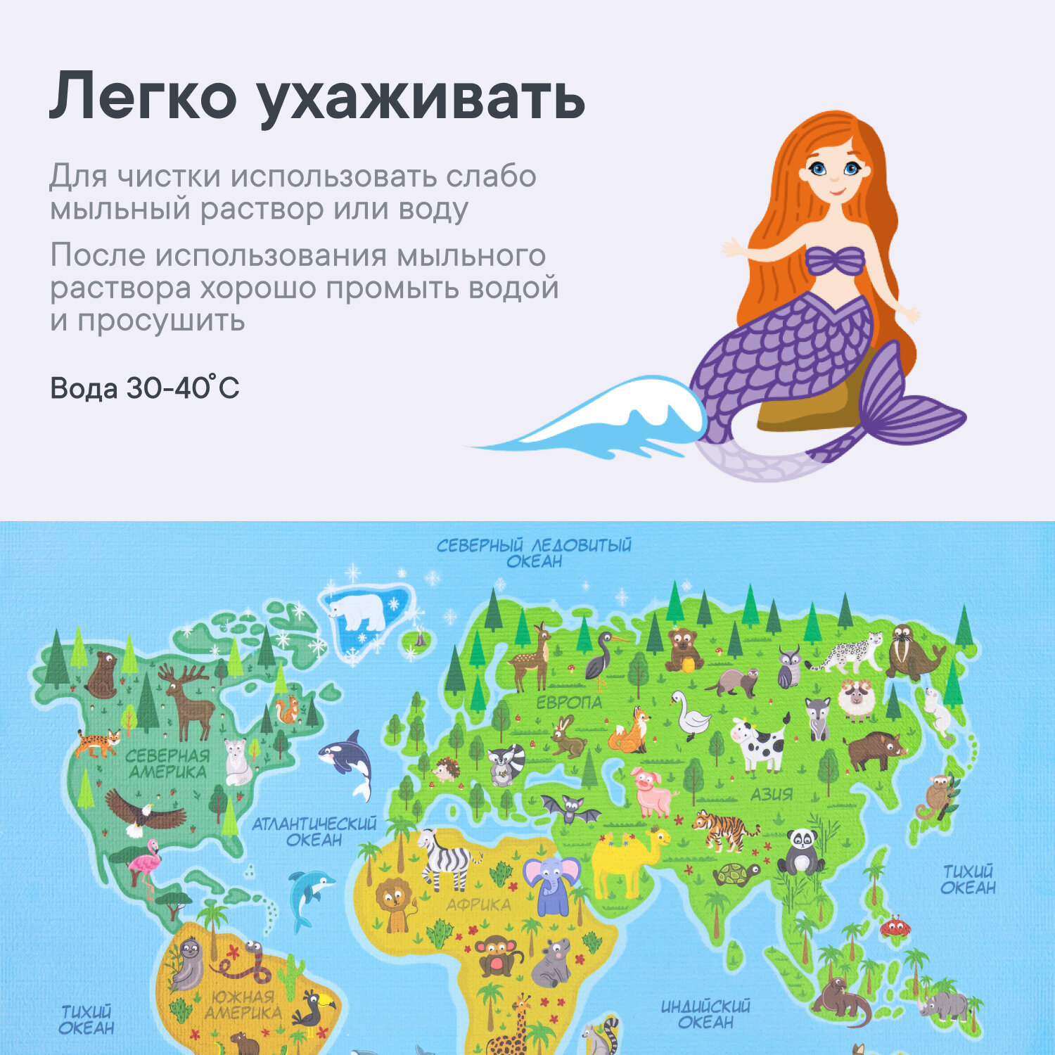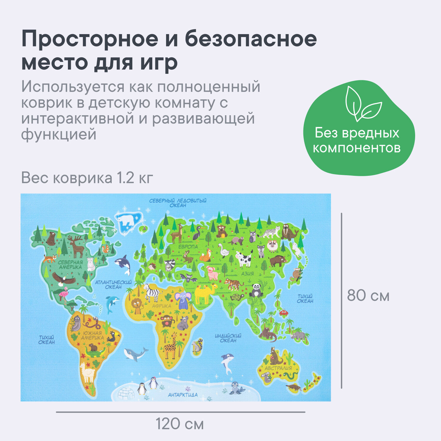 СохранитьКоврик игровой для детей "Познавайка" 80х120 см с принтом (Карта мира) интересное: