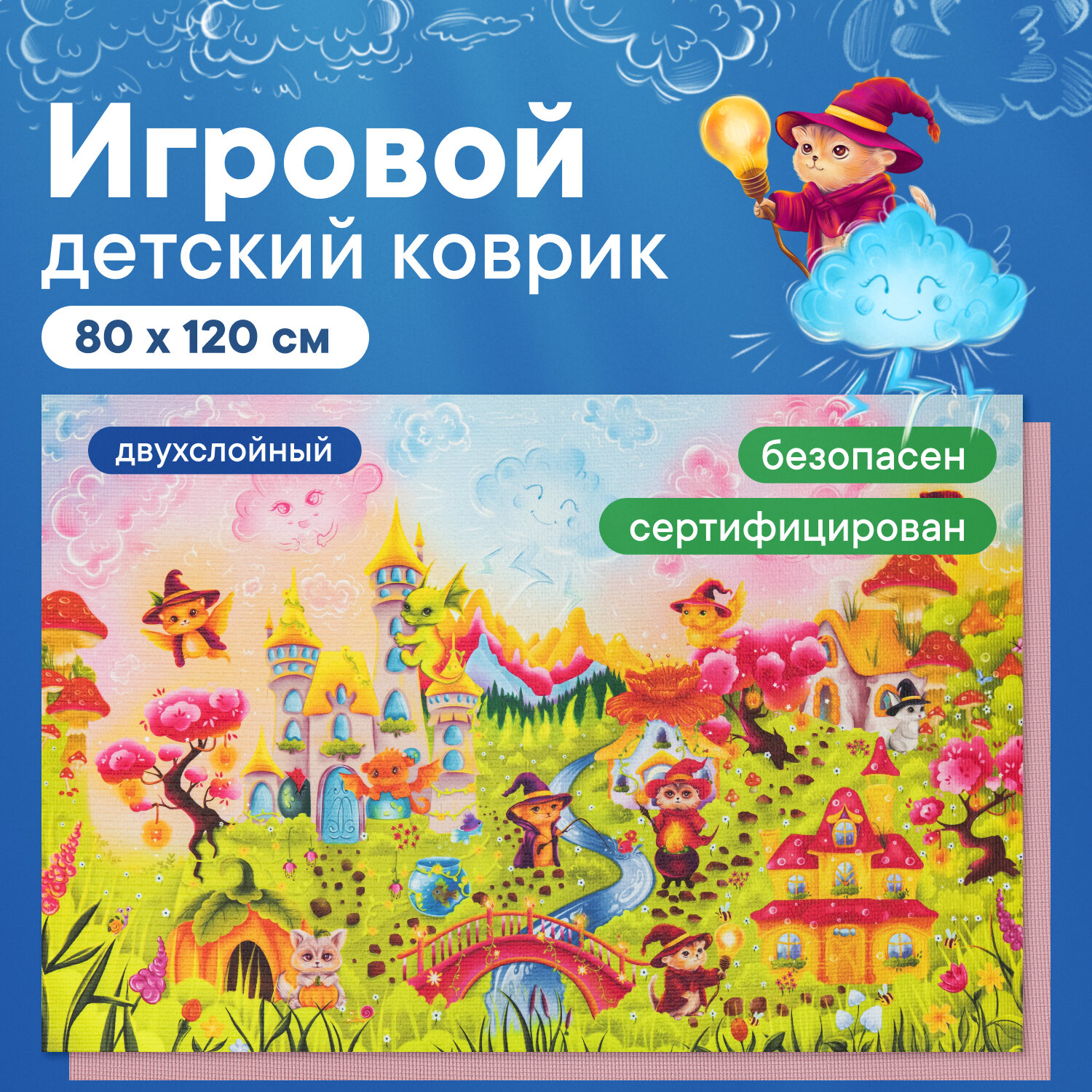 Коврик игровой для детей "Познавайка" 80х120 см с принтом (Сказки)