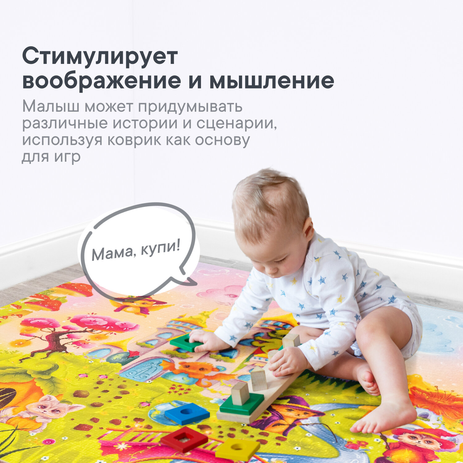 Коврик игровой для детей "Познавайка" 80х120 см с принтом (Классики)