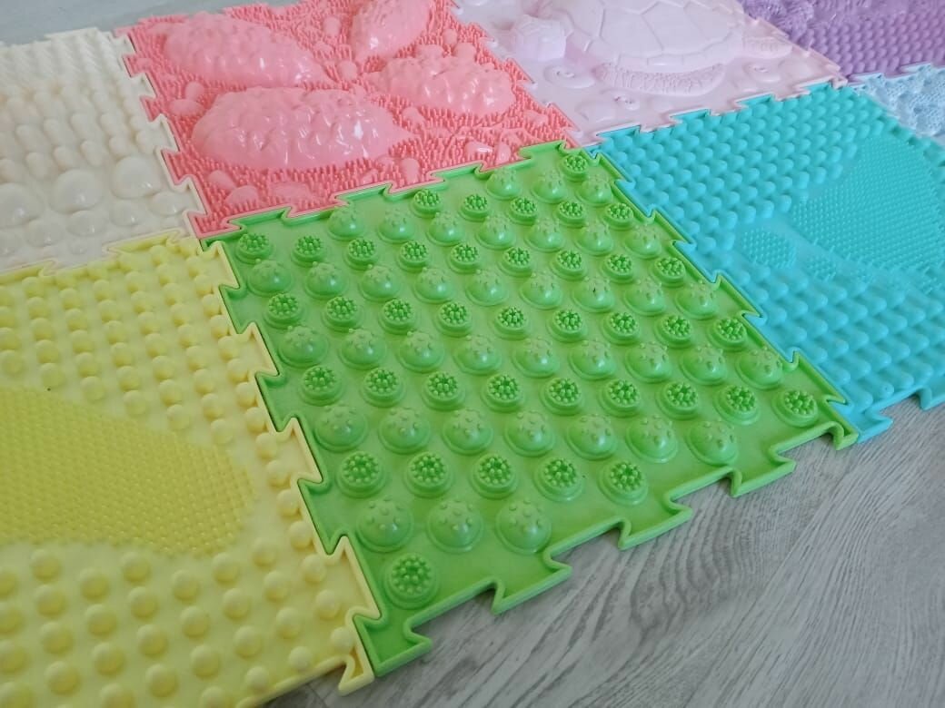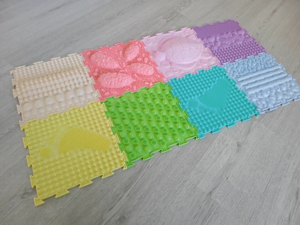 Детский массажный коврик ОртоДон, набор Pastel №8 с пищалками (8 пазлов, 3 в 1) интересное: