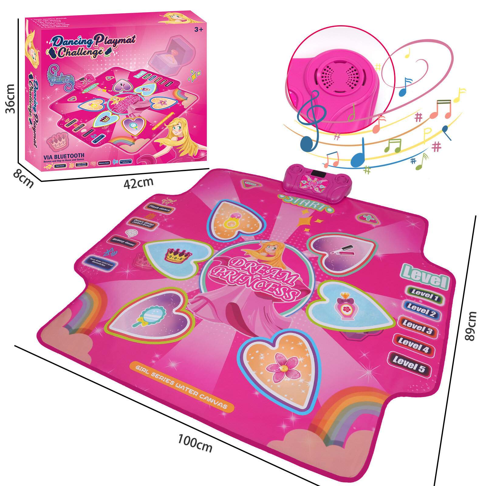 Музыкальный коврик, для танцев, непромокаемый пластик, розовый, Bluetooth function интересное: