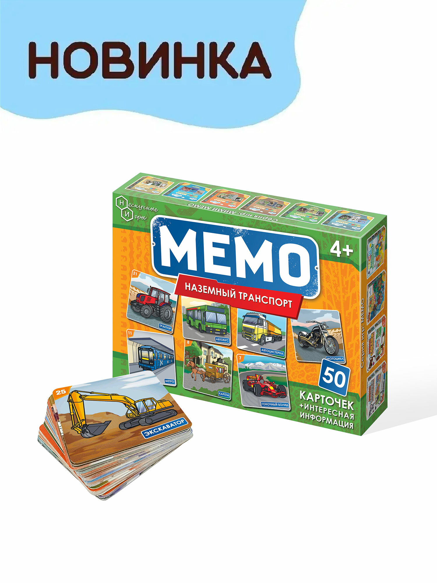 Купить Настольная игра Мемо "Наземный транспорт" 50 карточек, для 2-5 игроков, от 4 лет