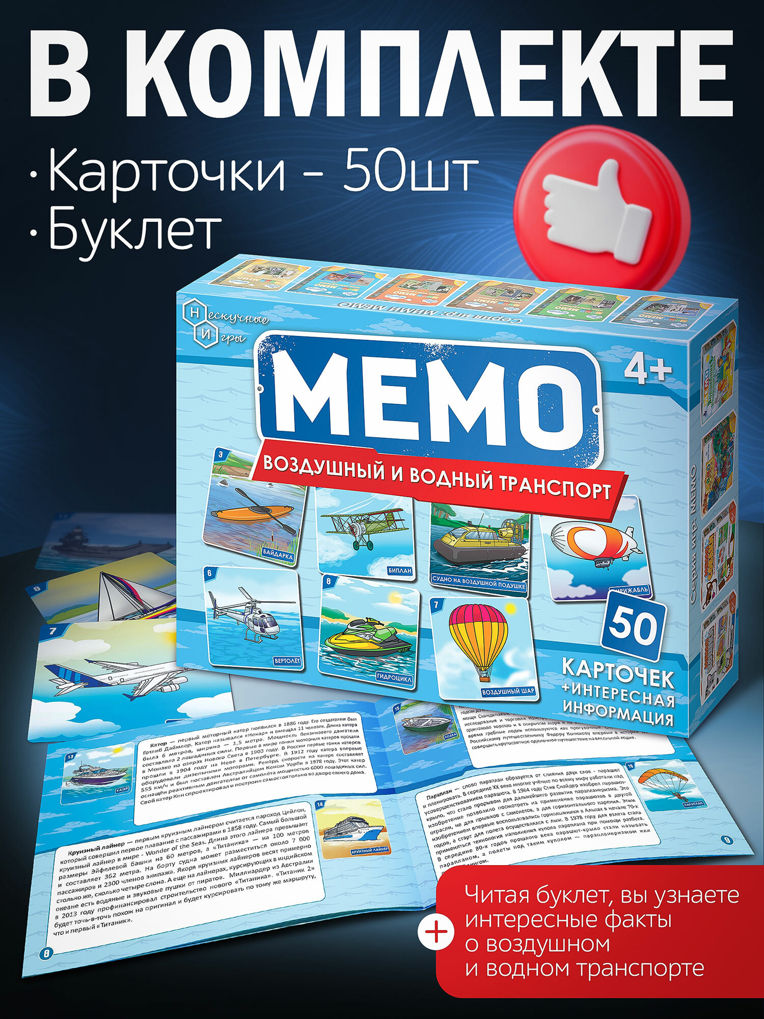 Настольная игра Мемо "Воздушный и водный транспорт" 50 карточек, от 4 лет интересное:
