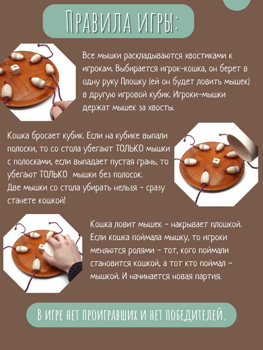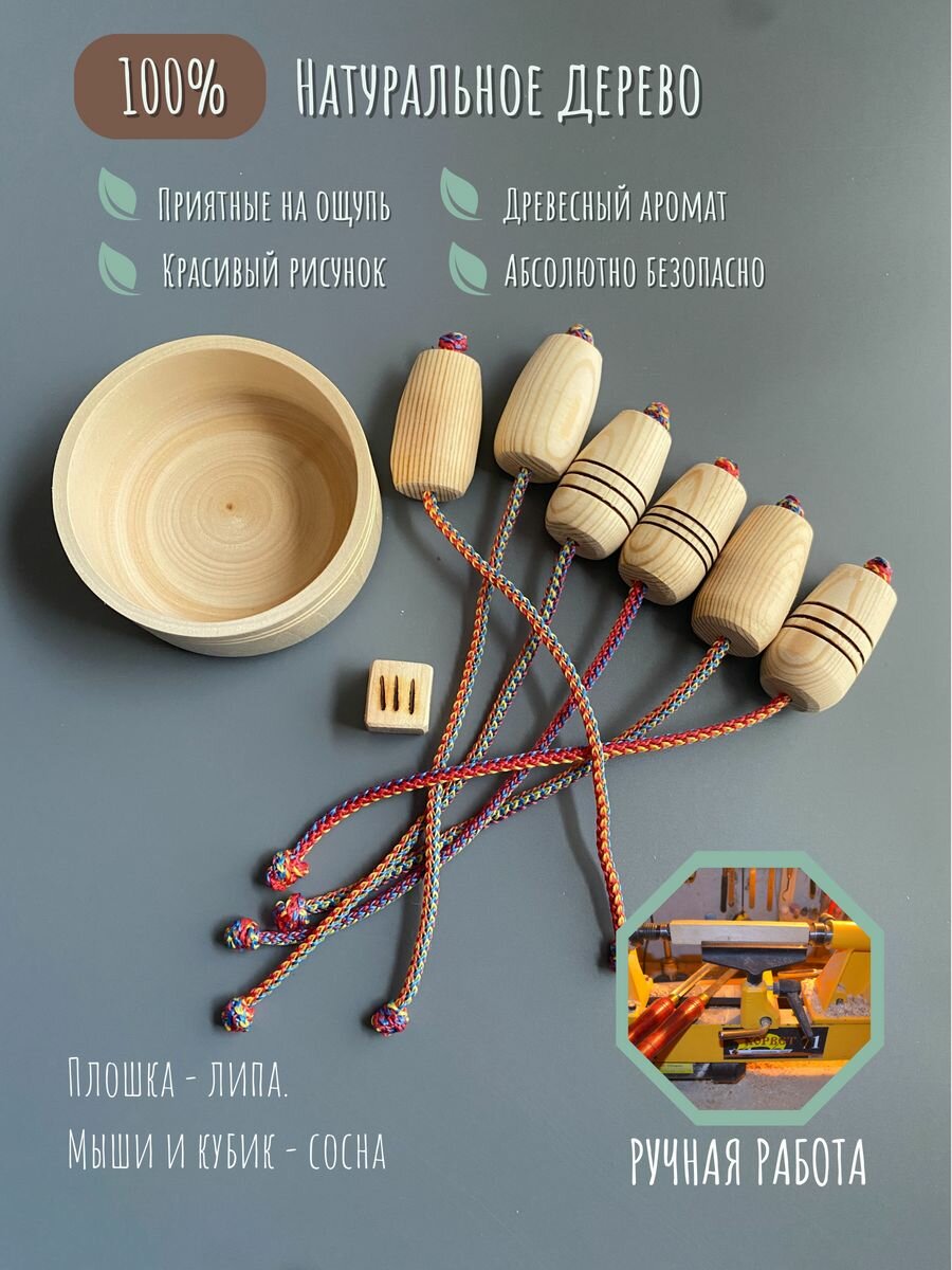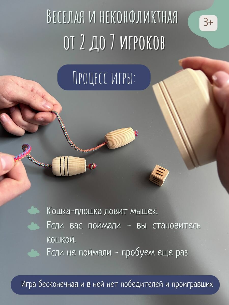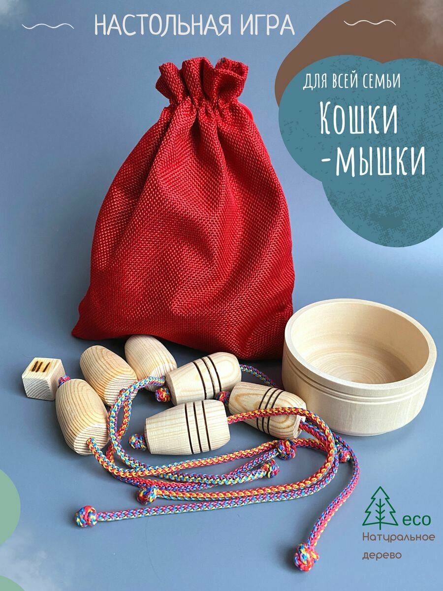 Настольная игра "Кошки-мышки", натуральное 100% дерево, развитие моторики рук, реакции. В мешочке. Для всей семьи. интересное: