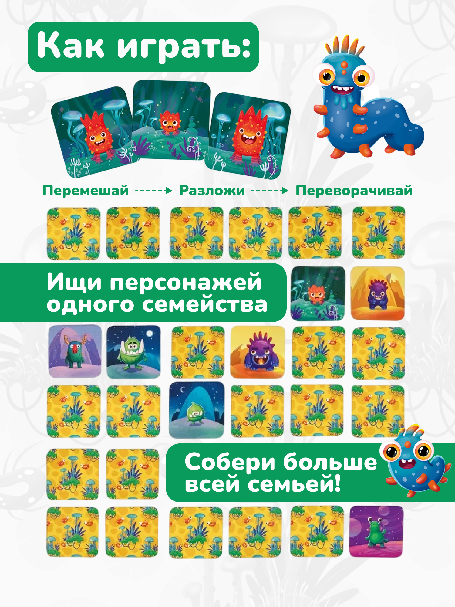 СохранитьДетская настольная карточная игра KONIK GAMES "ТРИМО МОСТРО" от 3 лет, мемо интересное: