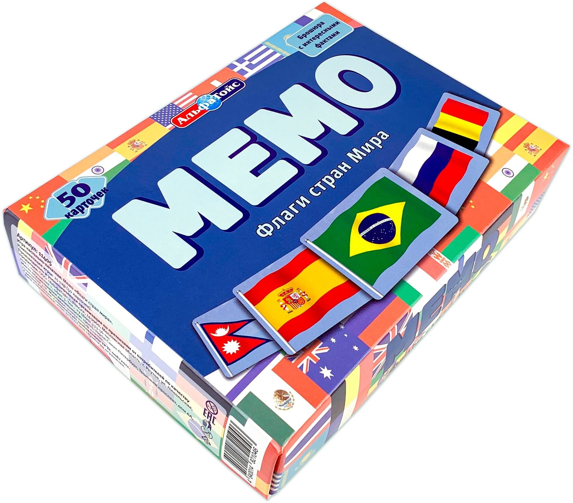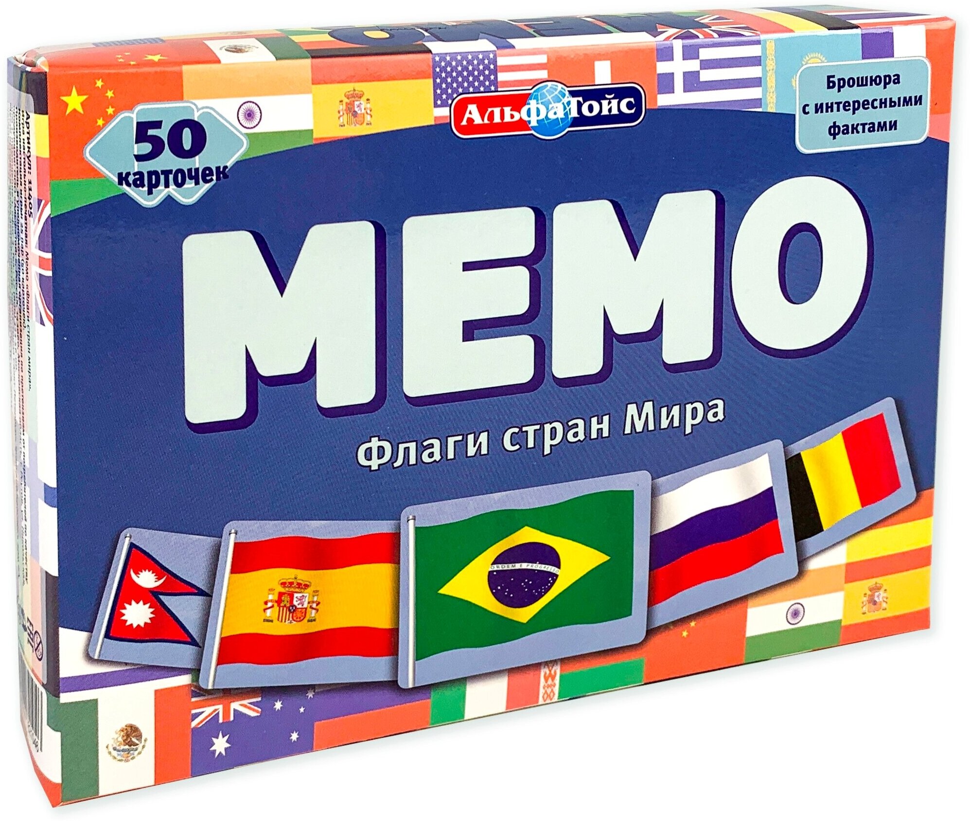 Альфатойс. Настольная игра Мемо "Флаги стран мира" 50 карточек, брошюра, от 3 лет интересное: