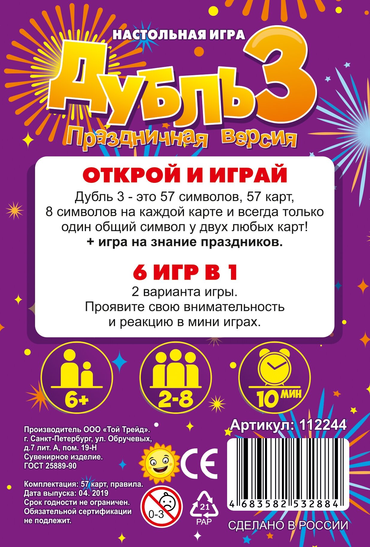 Настольная игра "Дубль 3. Праздничная" 50 карточек, для 2-8 игроков, от 6 лет интересное: