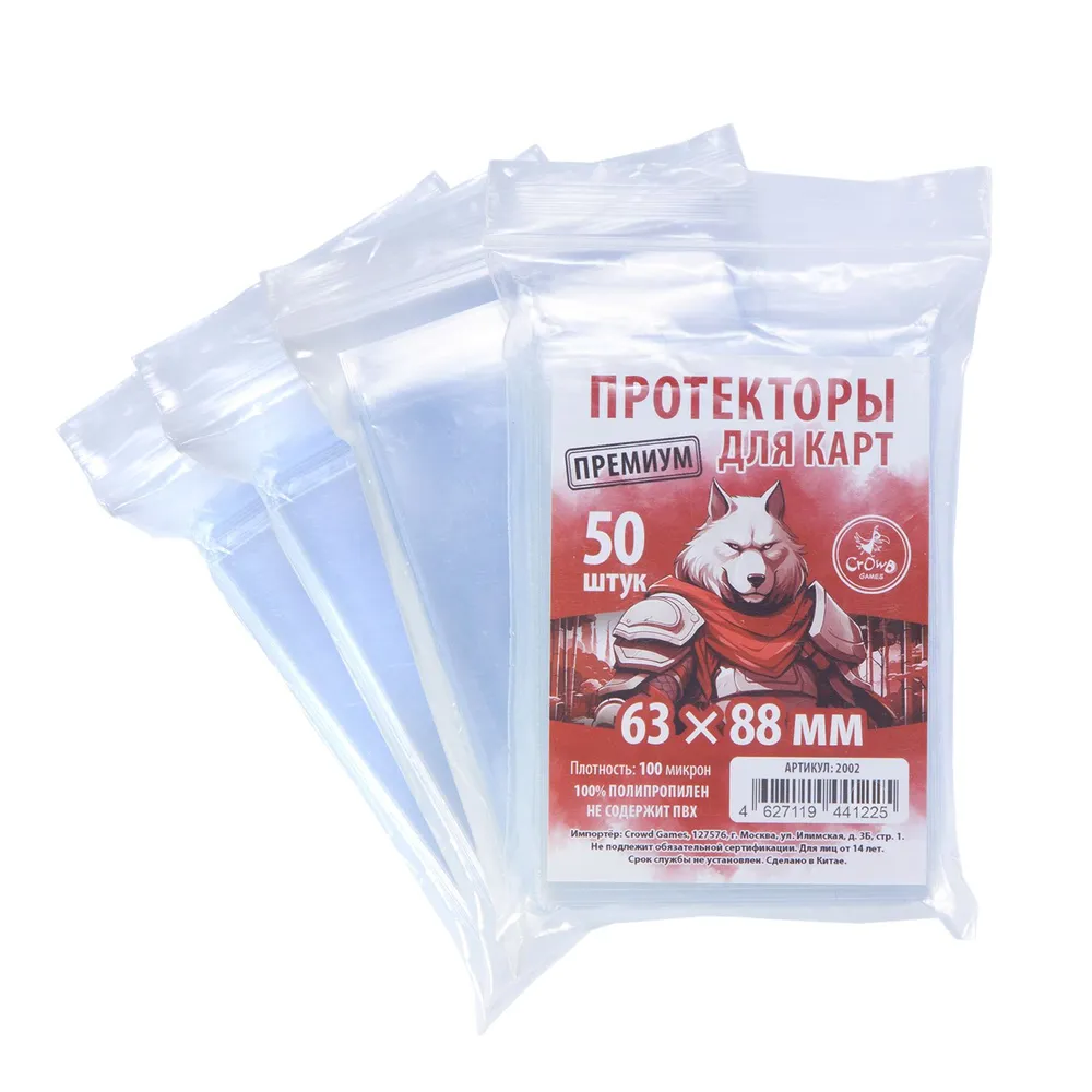 Купить Протекторы Crowd Games Premium для карт 63x88 мм (100 мк, 50 шт.), 4 пачки