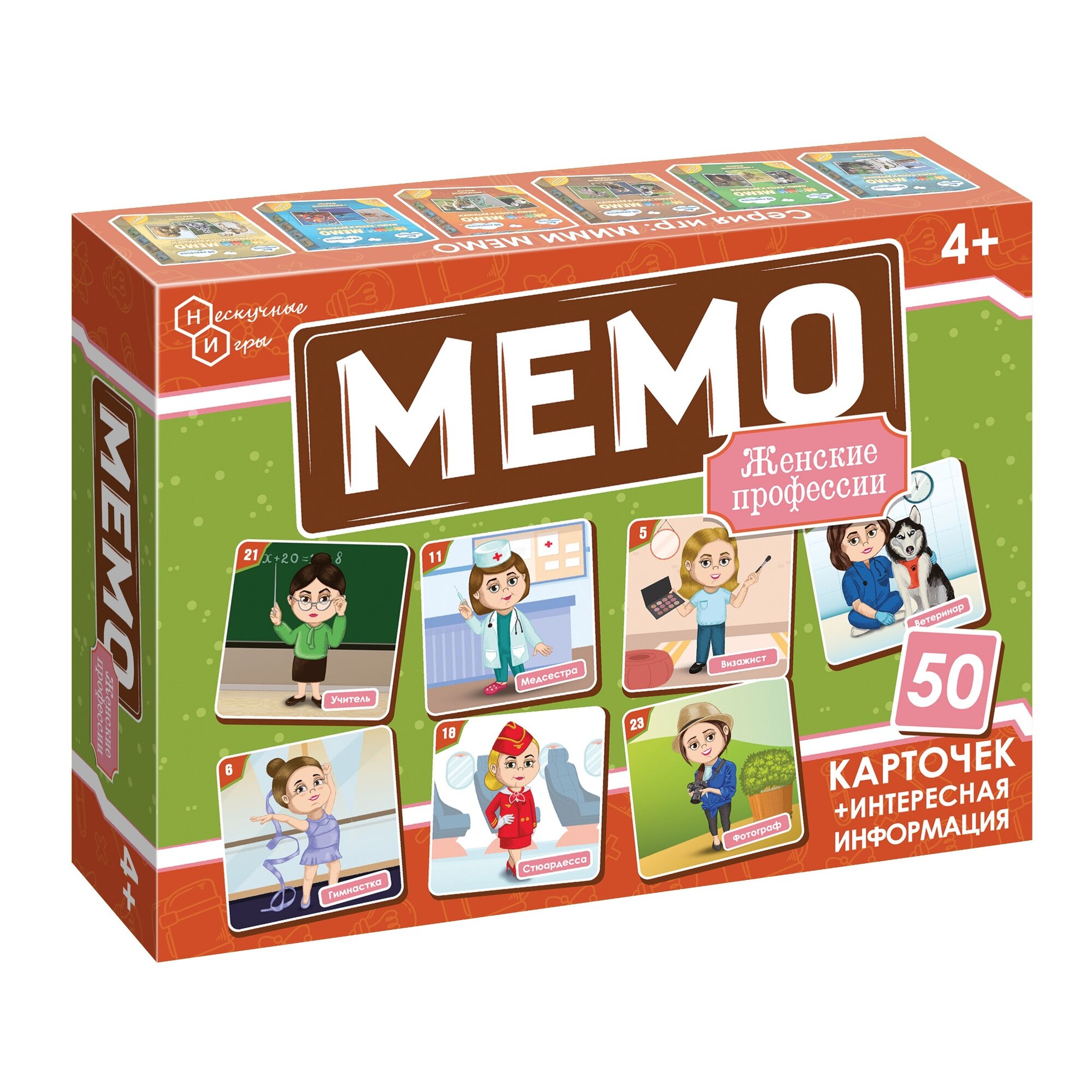 Купить Нескучные Игры. Настольная игра Мемо "Женские профессии" 50 карт, развитие памяти и внимания