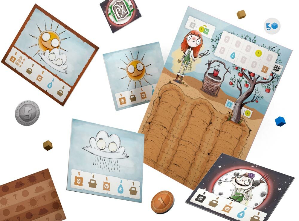 | Подробная комплектация | В состав настольной игры входят: 4 двусторонних планшета персонажей; 27 обычных карточек; 14 карточек красной луны; 6 карт раундов; 44 монеты; 44 кубика воды; 20 кубиков удобрений; 4 жетона «5 кубиков воды»; 4 маркера персонажей; правила игры. |