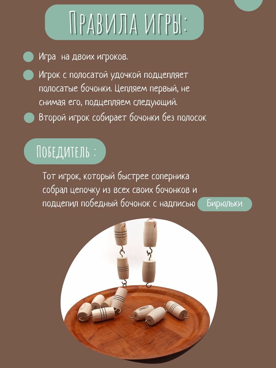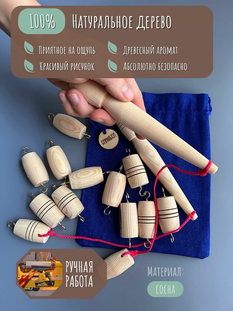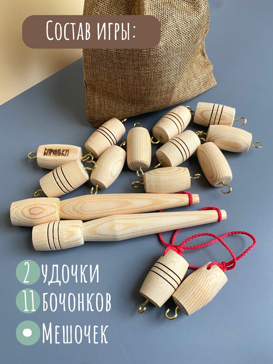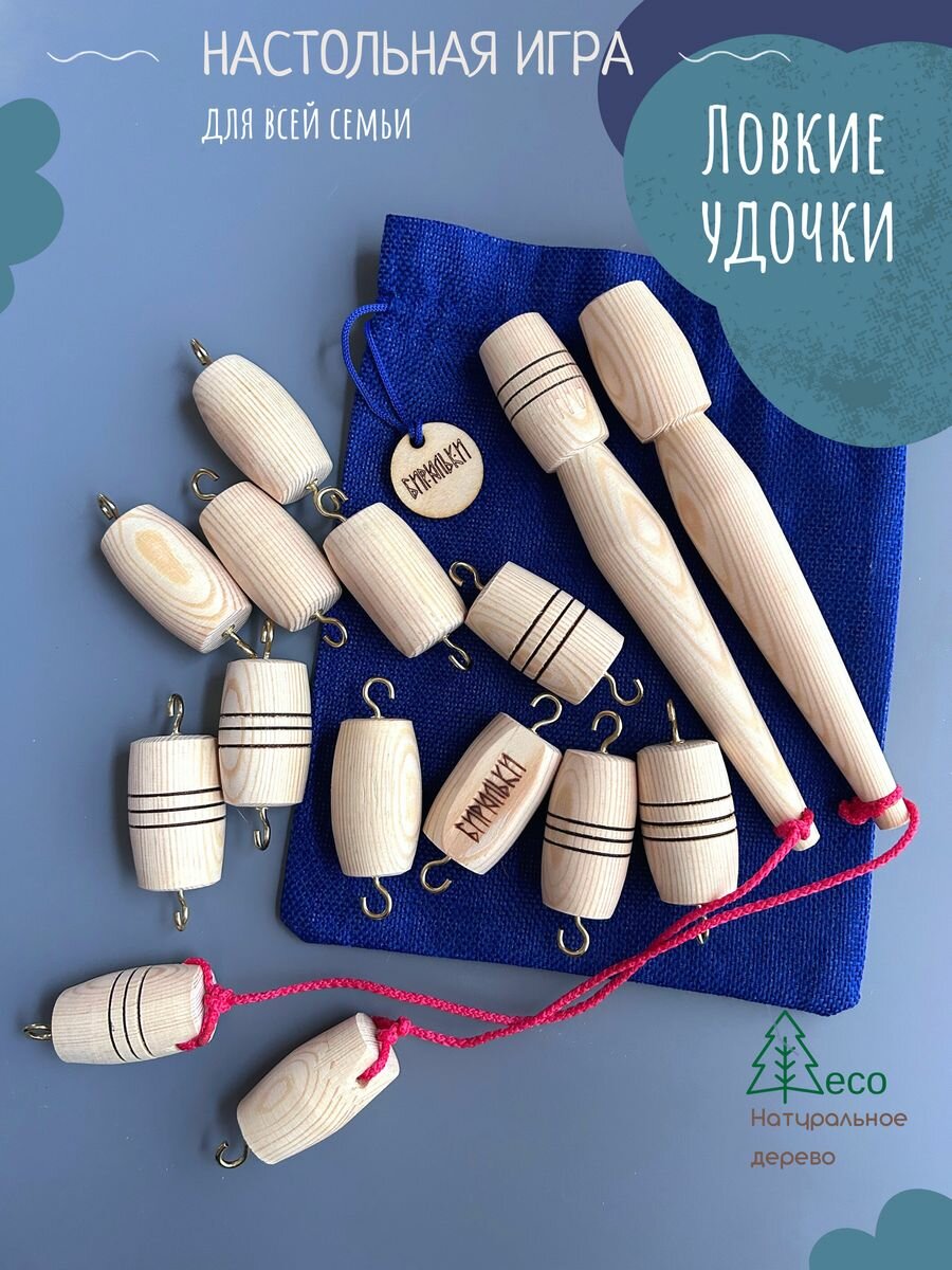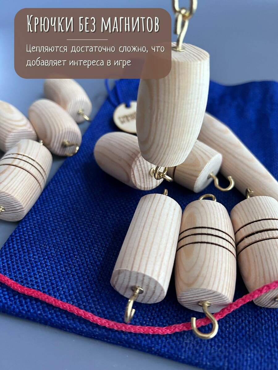 Игра настольная Мастерская Бирюльки "Ловкие Удочки. Русская рыбалка", для двоих игроков, 3+ лет, Из дерева, не магнитная интересное: