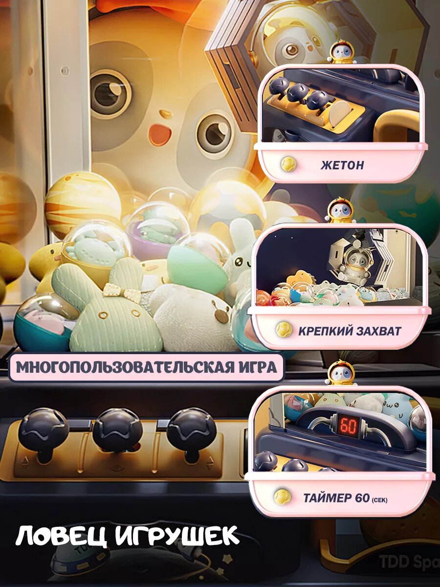 Игровой автомат с игрушками Хватайка, аппарат для ловли игрушек, автомат с игрушками, розовый интересное: