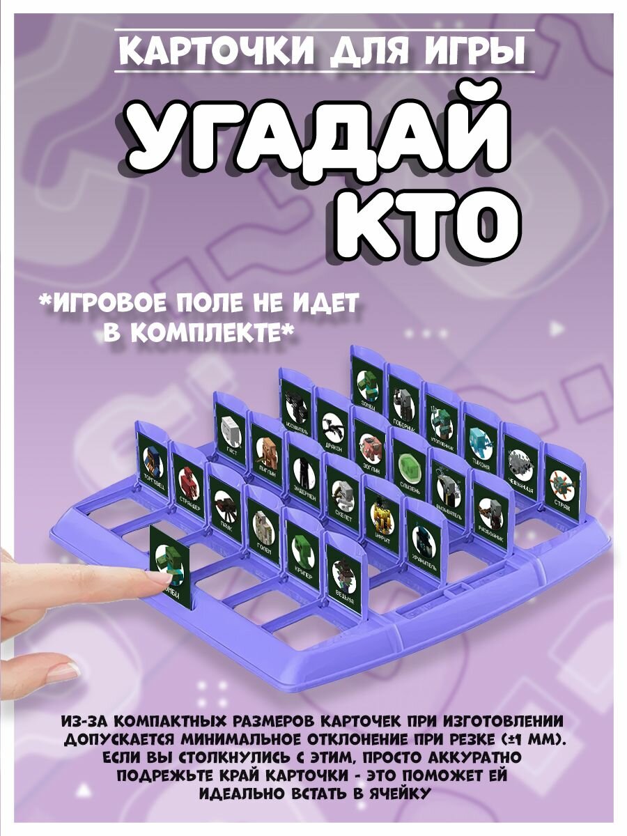 Ниже Вы можете прочитать отзывы на Карточки для игры угадай кто Майнкрафт, ознакомится с подробными характеристиками, посмотреть интересные обзоры и фотографии на Карточки для игры угадай кто Майнкрафт.