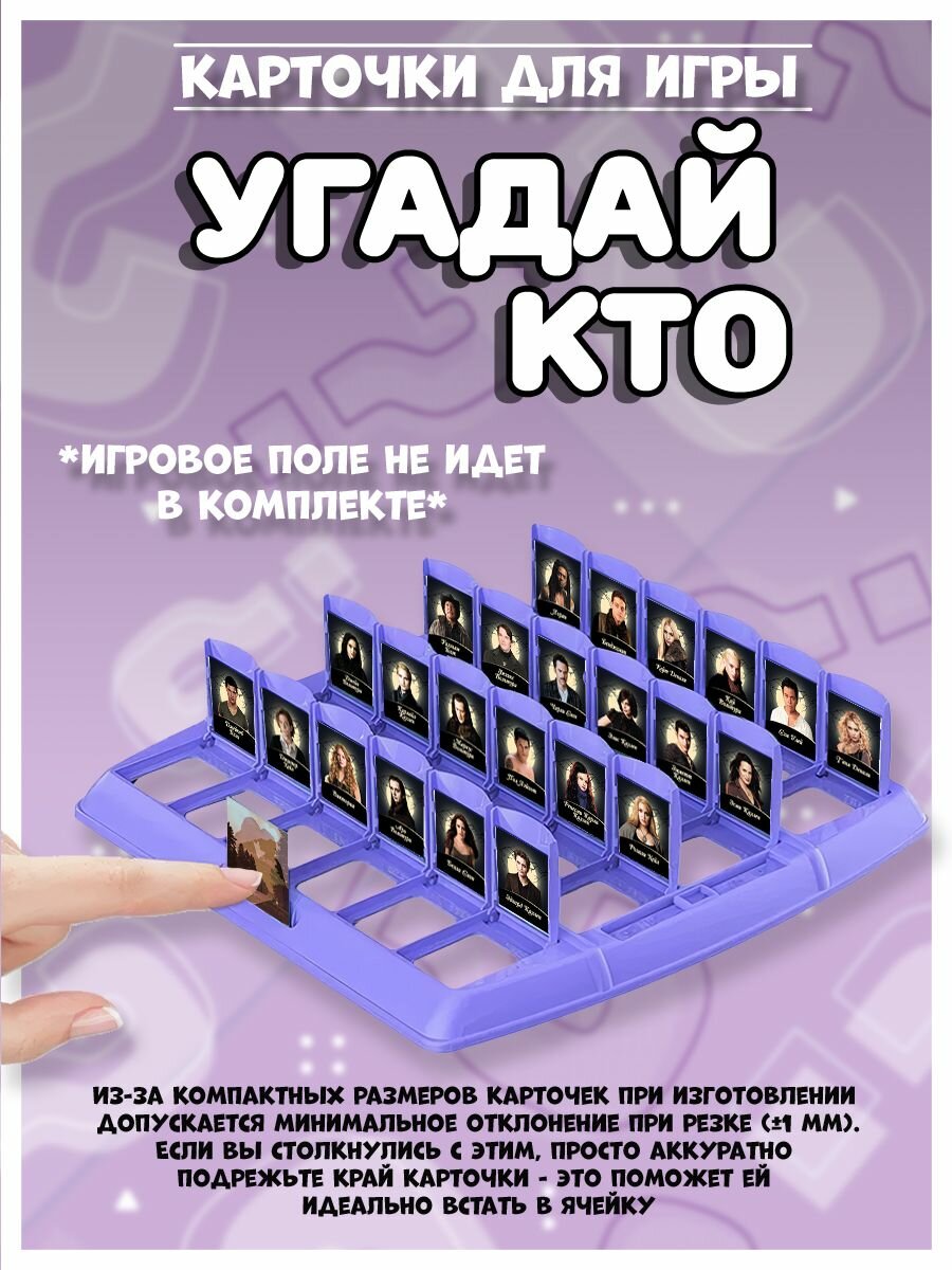 Ниже Вы можете прочитать отзывы на Карточки для игры угадай кто сумерки, ознакомится с подробными характеристиками, посмотреть интересные обзоры и фотографии на Карточки для игры угадай кто сумерки.
