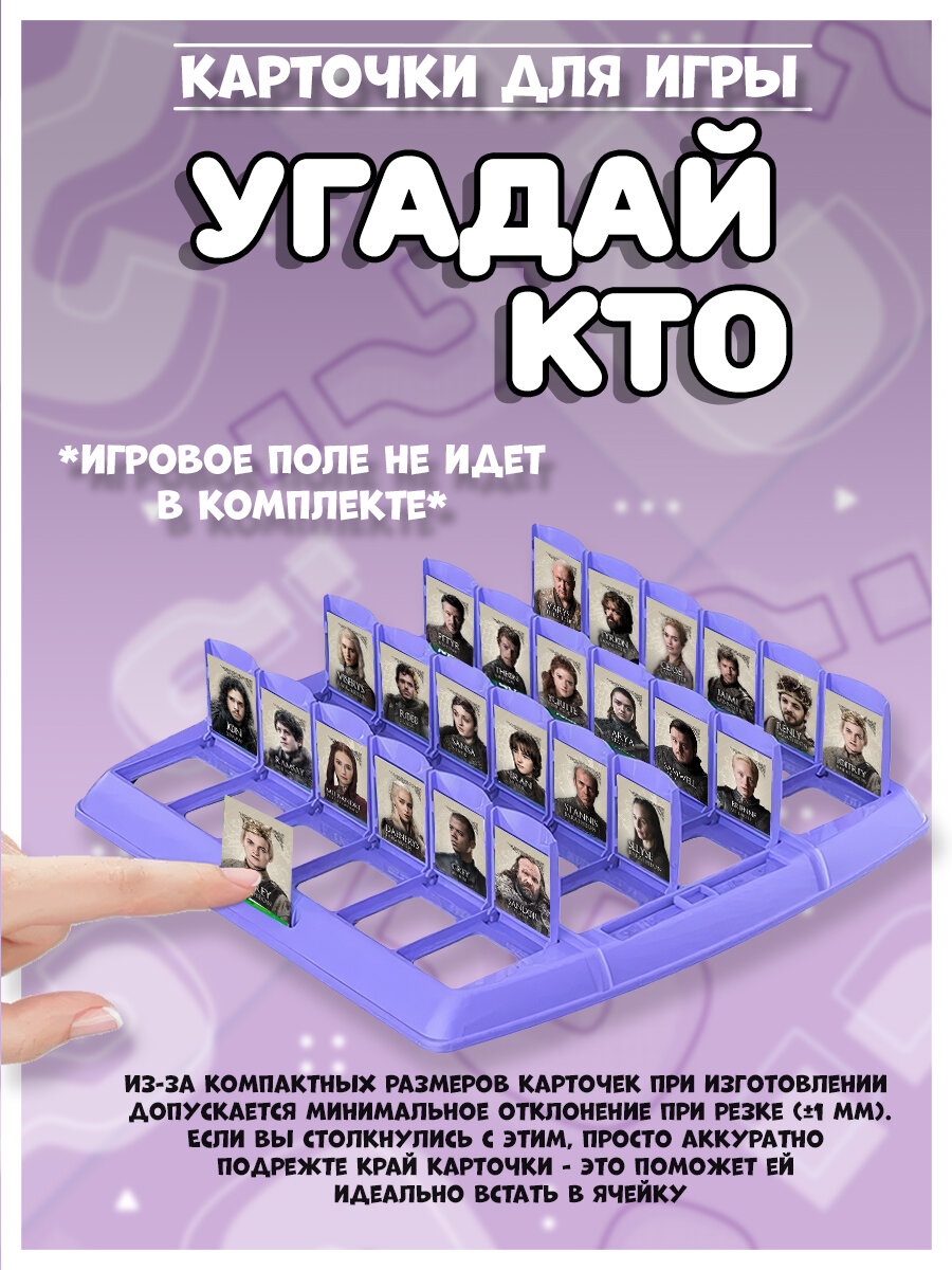 Ниже Вы можете прочитать отзывы на Карточки для игры угадай кто игра престолов, ознакомится с подробными характеристиками, посмотреть интересные обзоры и фотографии на Карточки для игры угадай кто игра престолов.