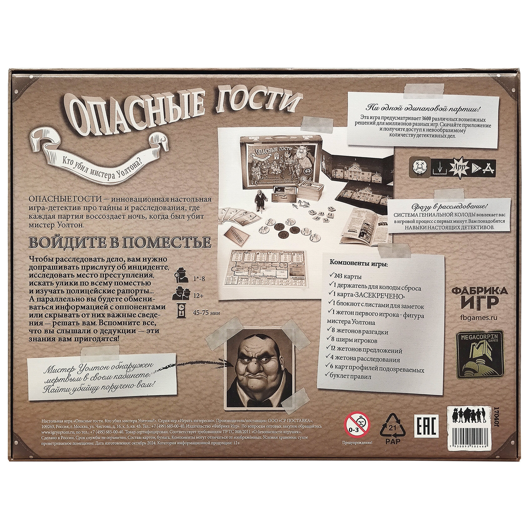 Купить Настольная детективная игра Фабрика Игр Опасные гости. Кто убил мистера Уолтона?
