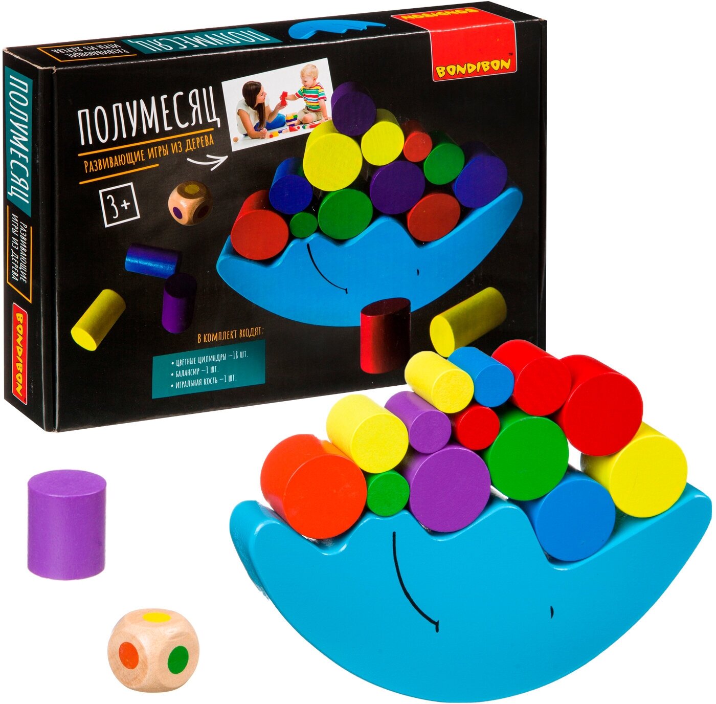 Купить Развивающая игра балансир для детей Bondibon Полумесяц логическая игрушка головоломка деревянная