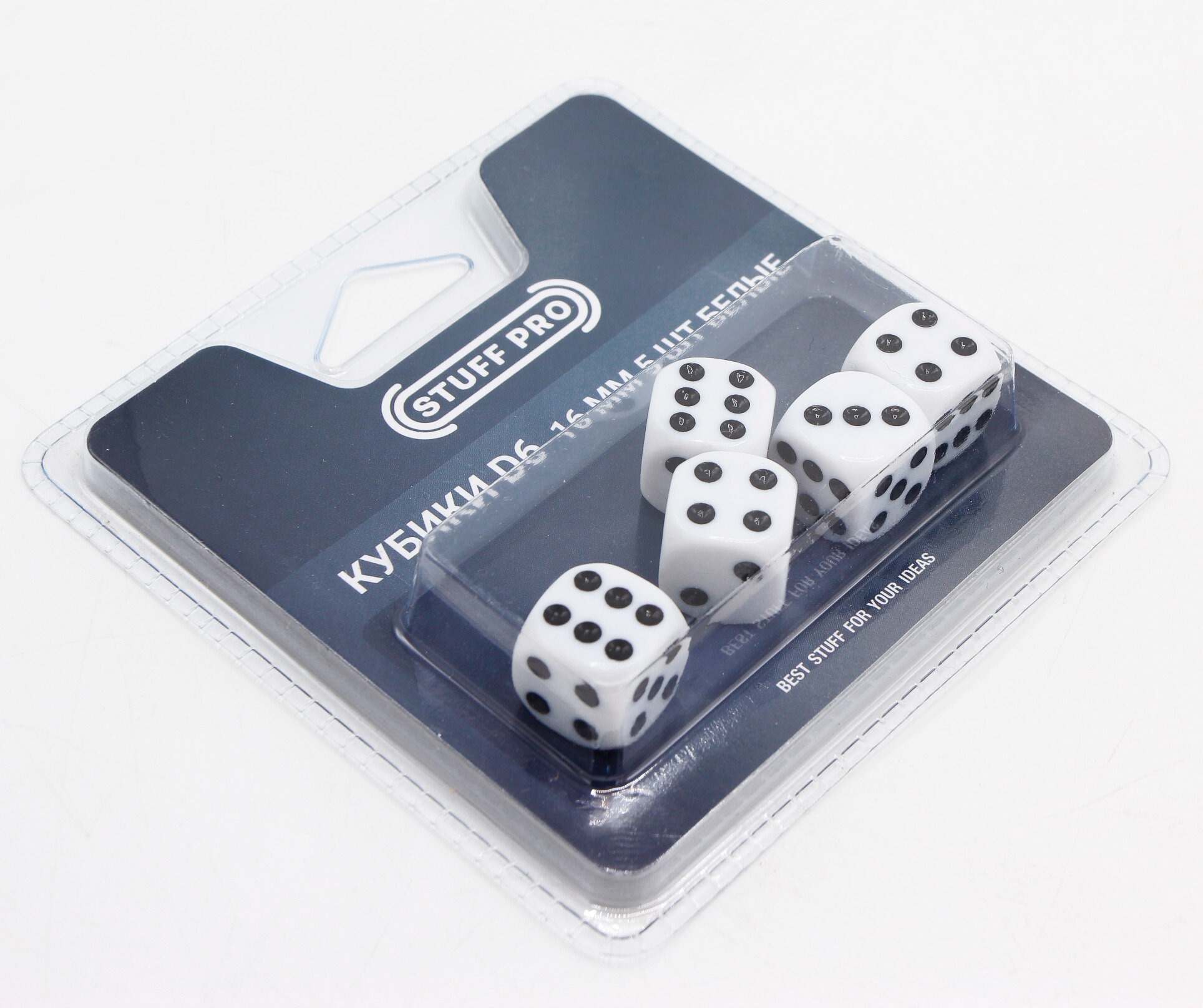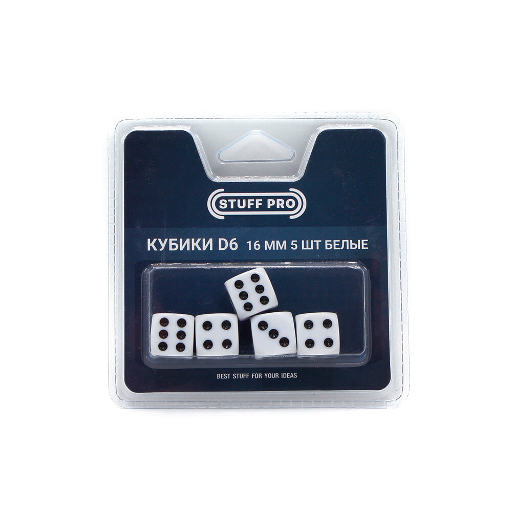 Купить Набор кубиков Stuff Pro дайсы d6, 5 шт, 16 мм, стандарт, белый