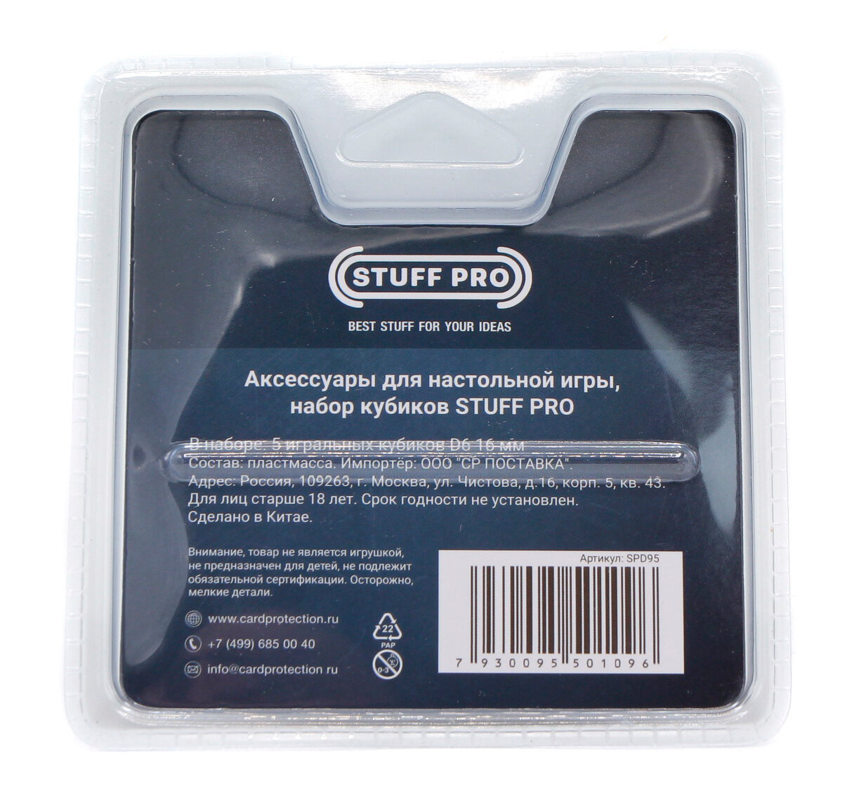 Набор кубиков Stuff Pro дайсы d6, 5 шт, 16 мм, стандарт, черный