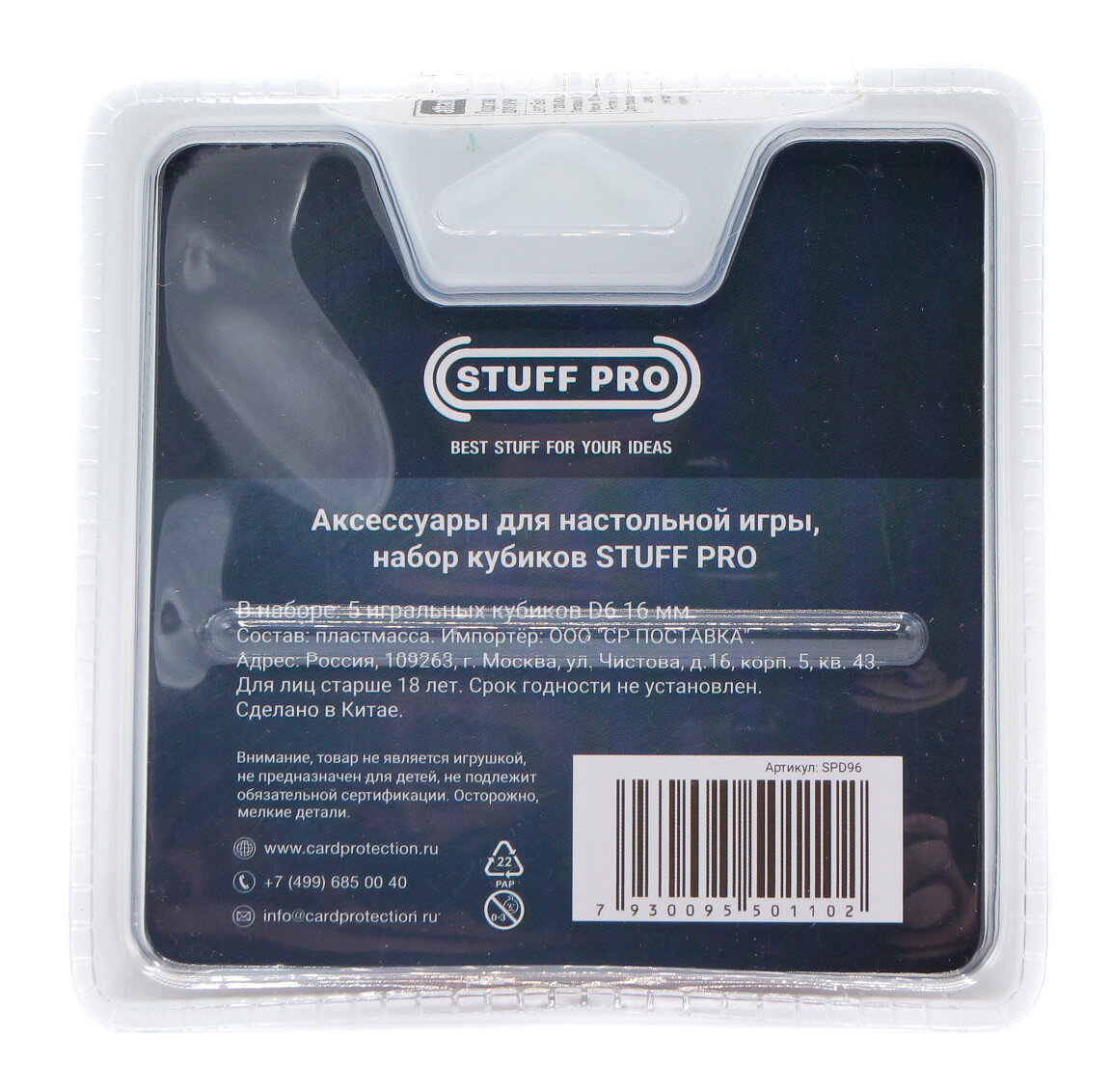 Набор кубиков Stuff Pro дайсы d6, 5 шт, 16 мм, стандарт, черный