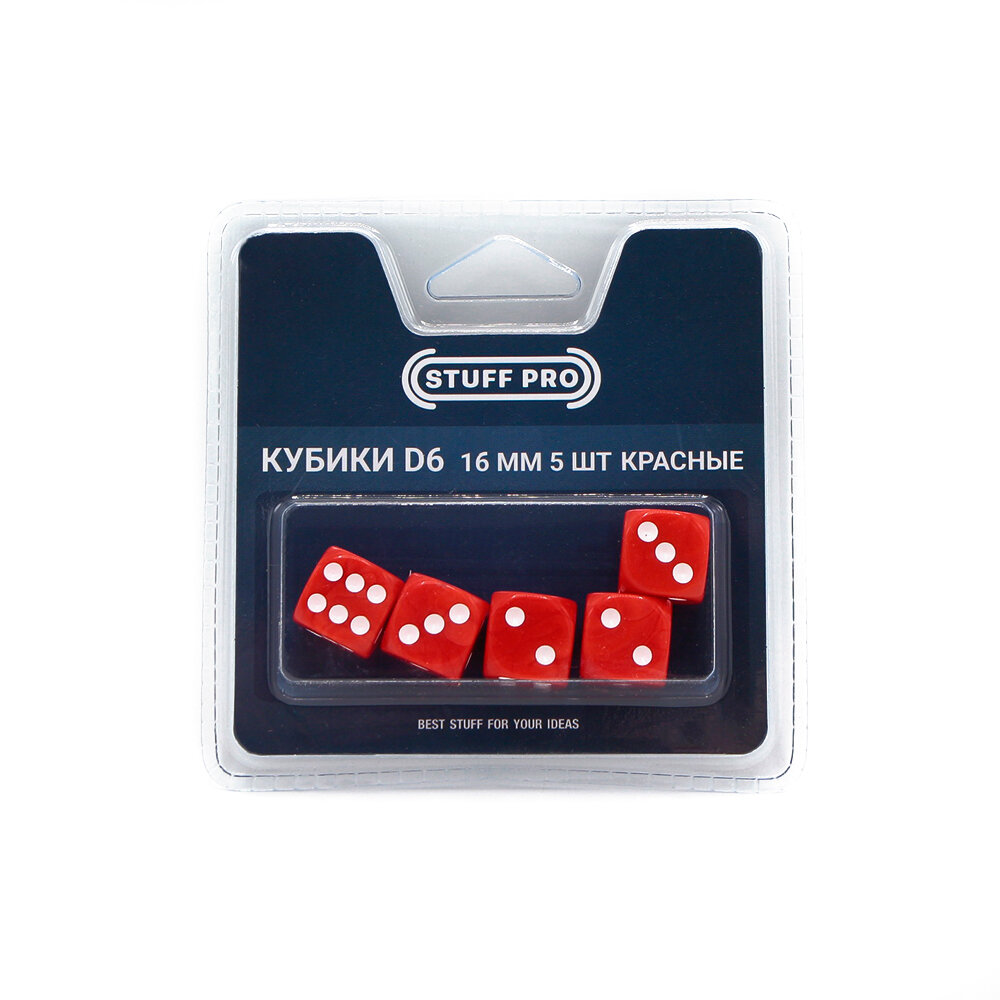 Купить Набор кубиков Stuff Pro дайсы d6, 5 шт, 16 мм, стандарт, красный
