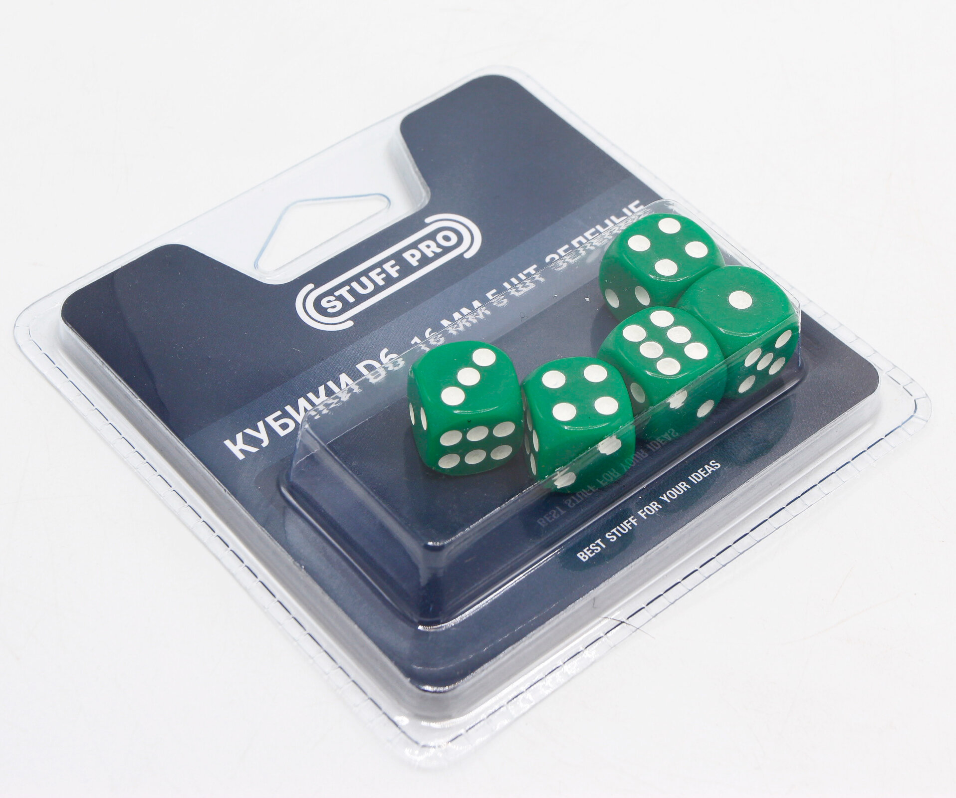 Набор кубиков Stuff Pro дайсы d6, 5 шт, 16 мм, стандарт, зелёный интересное: