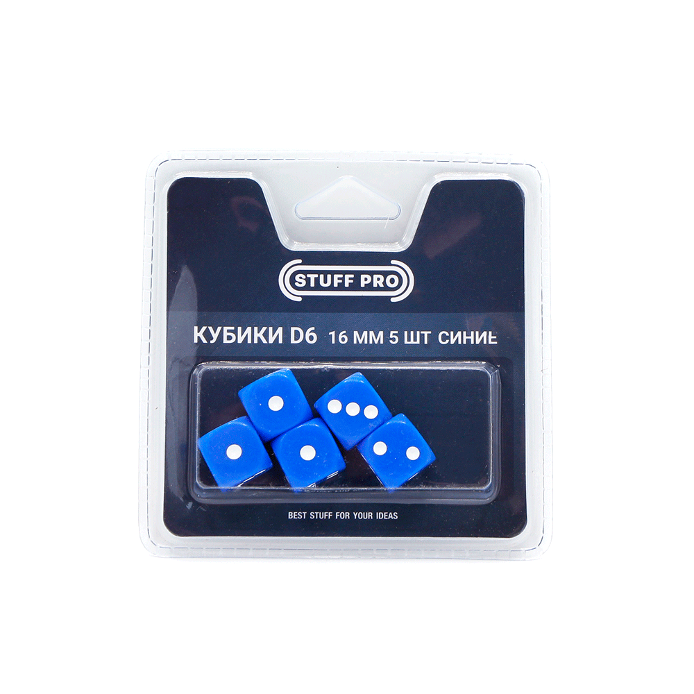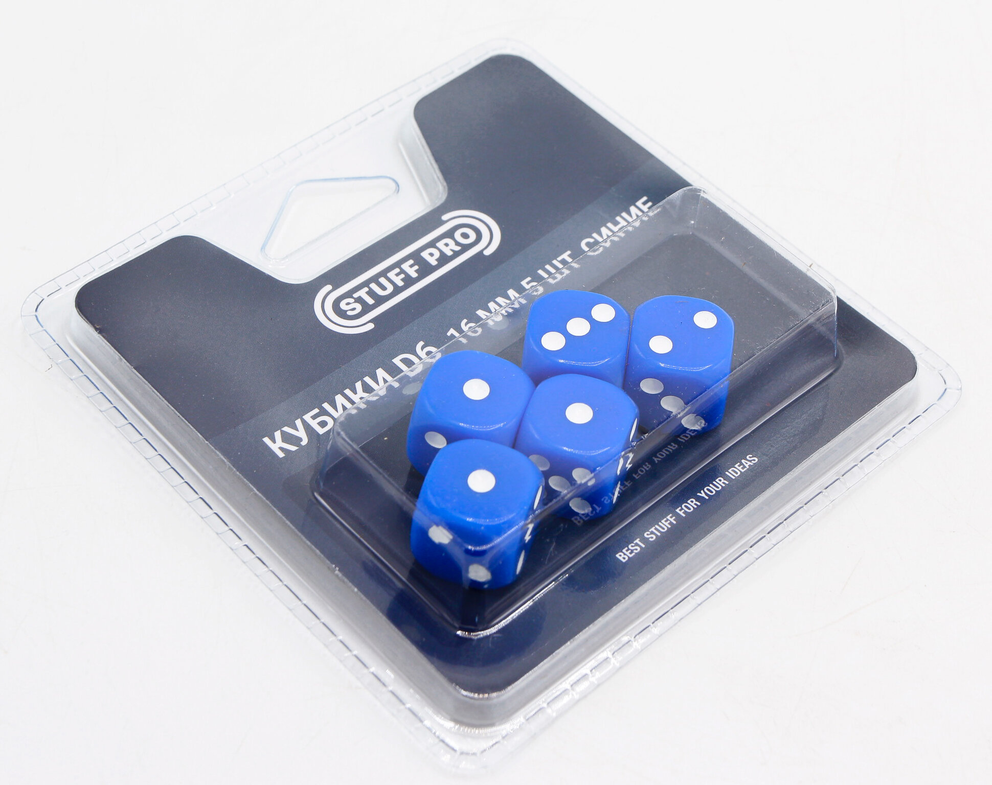 Купить Набор кубиков Stuff Pro дайсы d6, 5 шт, 16 мм, стандарт, синий
