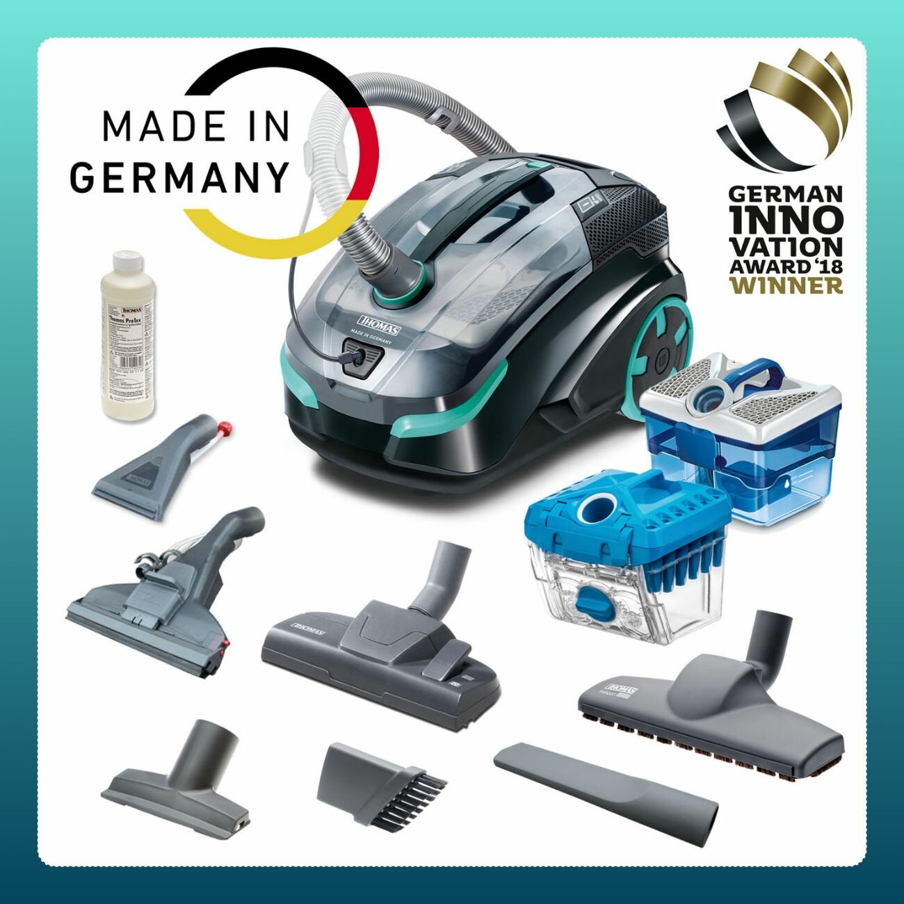 Пылесос THOMAS DRYBOX AMFIBIA FAMILY / Моющий пылесос, 1700 Вт, DryBox, HEPA, черный/бирюзовый