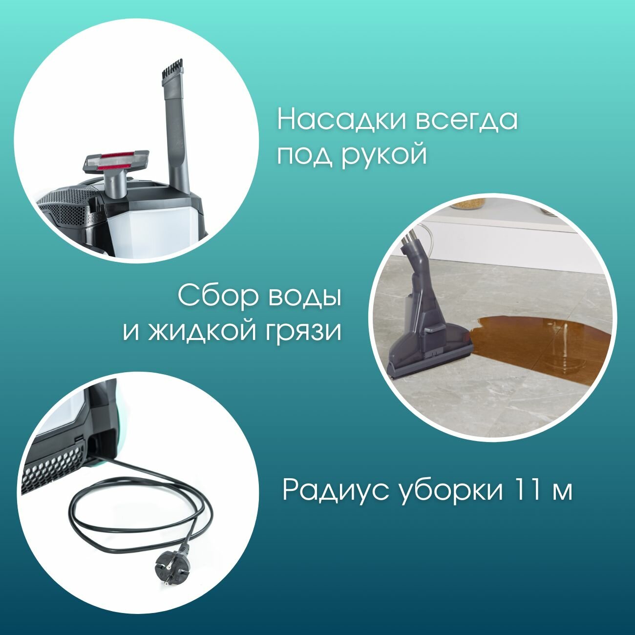 | Плюсы: | Мощный, удобный, влажная уборка, насадки на все поверхности |