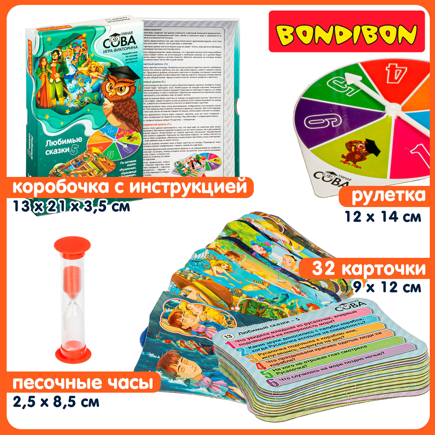 | Подробная комплектация | В комплекте: 32 двусторонние карточки из твердого картона, рулетка и песочные часы. |