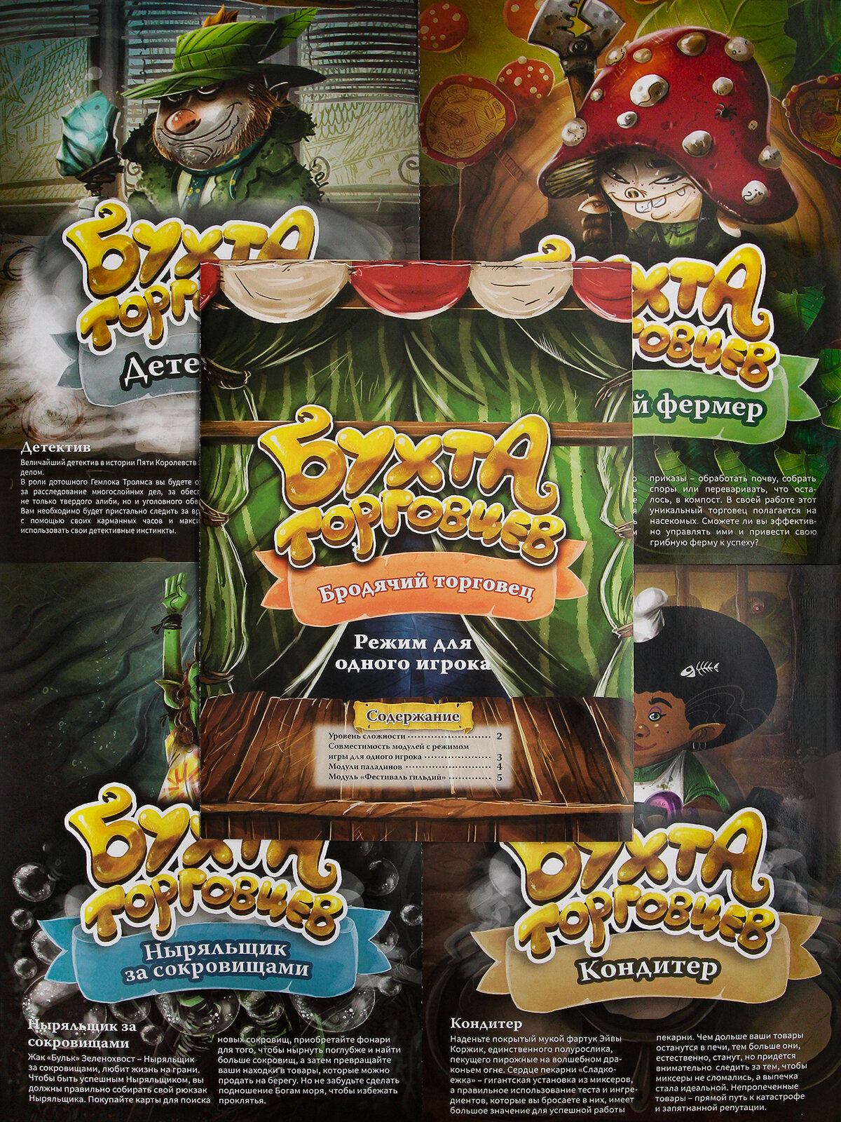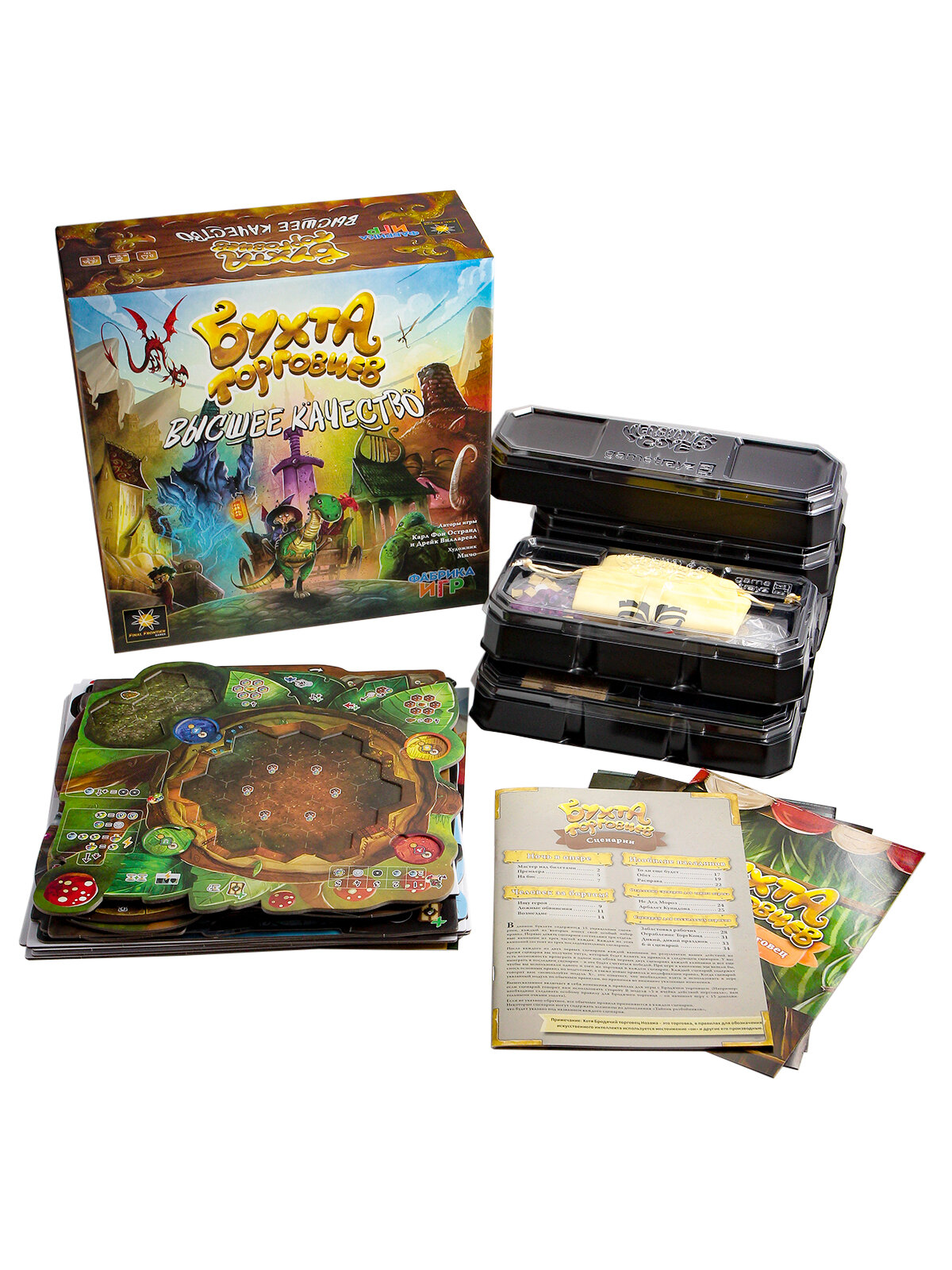 | Комплектация | 4 первых дополнения к Бухте торговцев ("Тайник разбойников"+"Драконолог"+"Оракул"+"Хозяин таверны"). |