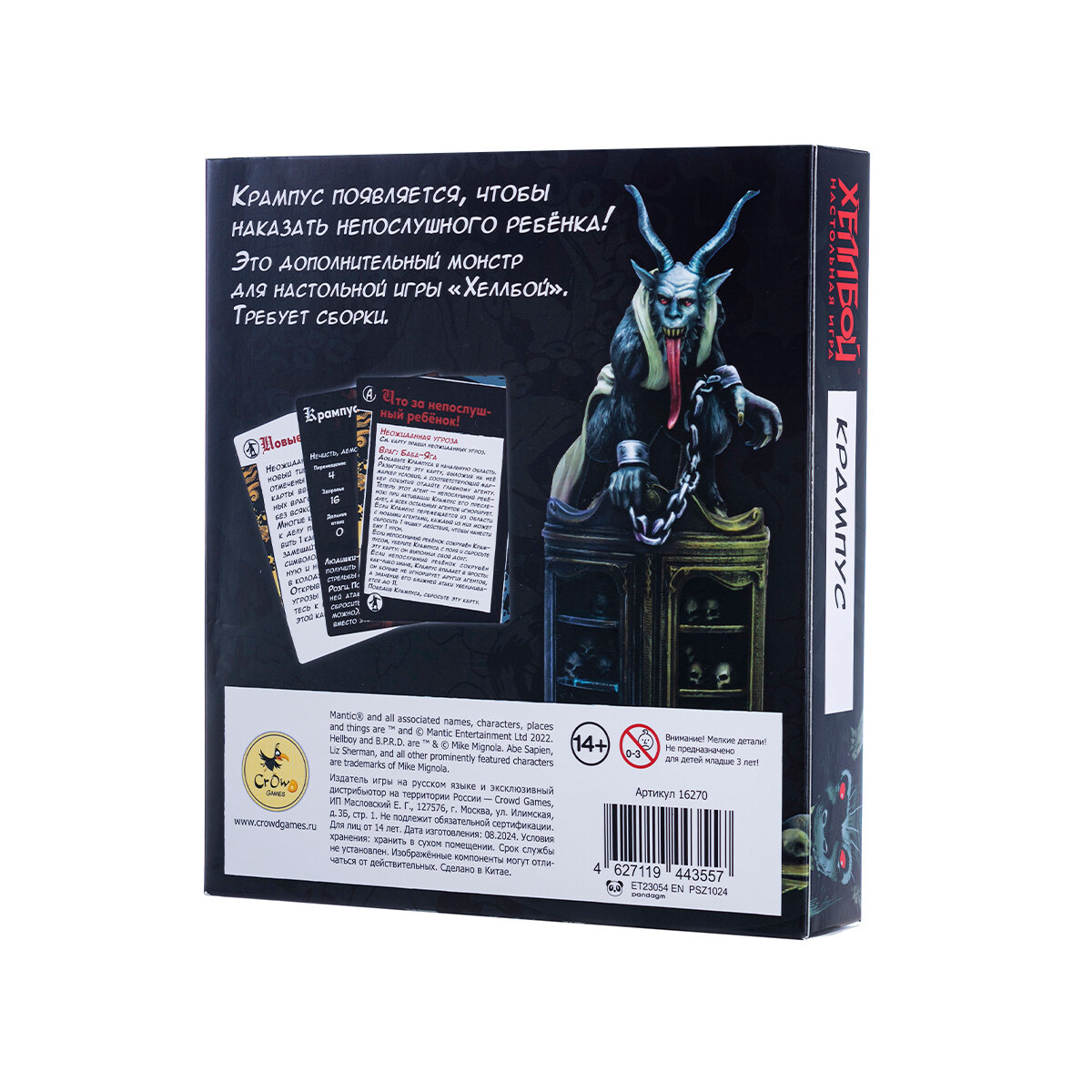 | Комплектация | Фигурка Крампуса (требует сборки), 1 карта правил, 1 карта неожиданной угрозы, 1 карта врага |