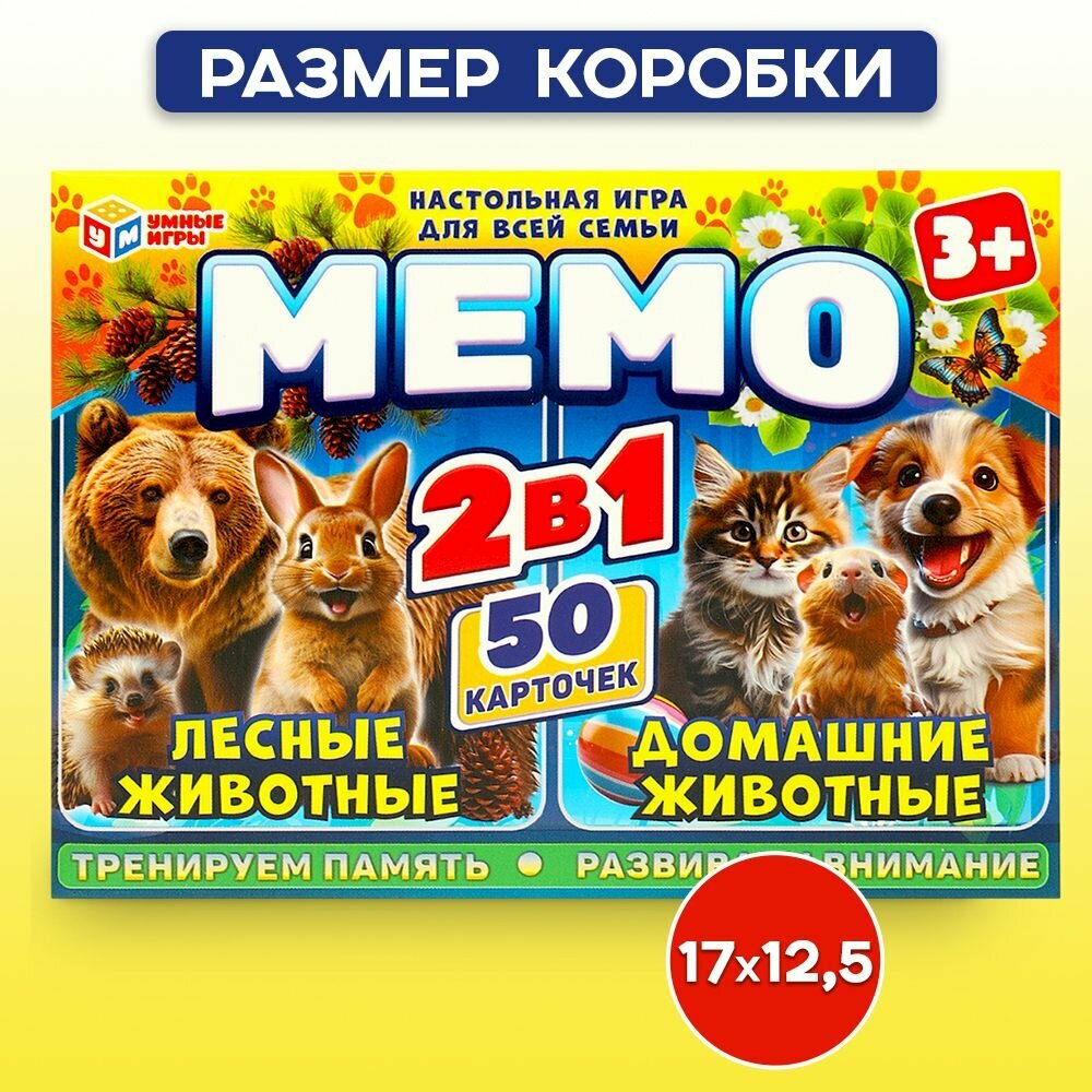 Купить Настольная игра мемо 2 в 1 Лесные и домашние животные Умные игры