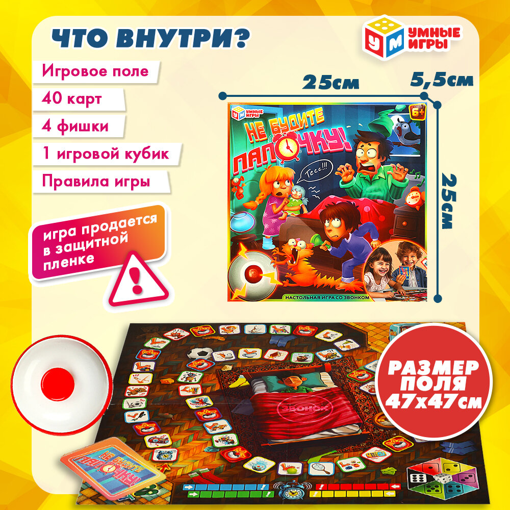 Купить Настольная игра для детей ходилка Не будите папочку, Умные игры, со звонком
