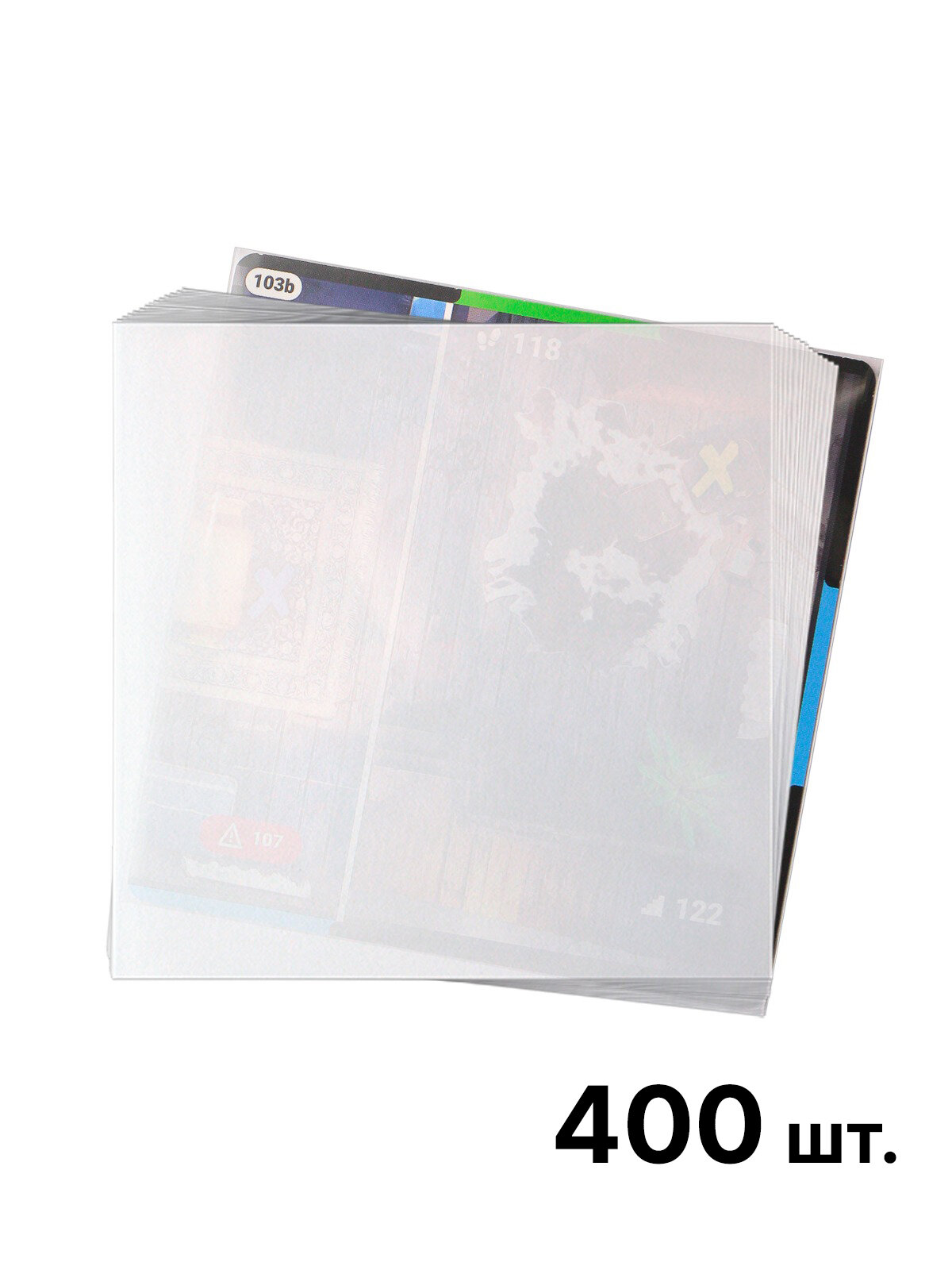 | Комплектация | Прозрачные протекторы, специально подобранные для карт игры «Поколения». Всего 400 протекторов. |