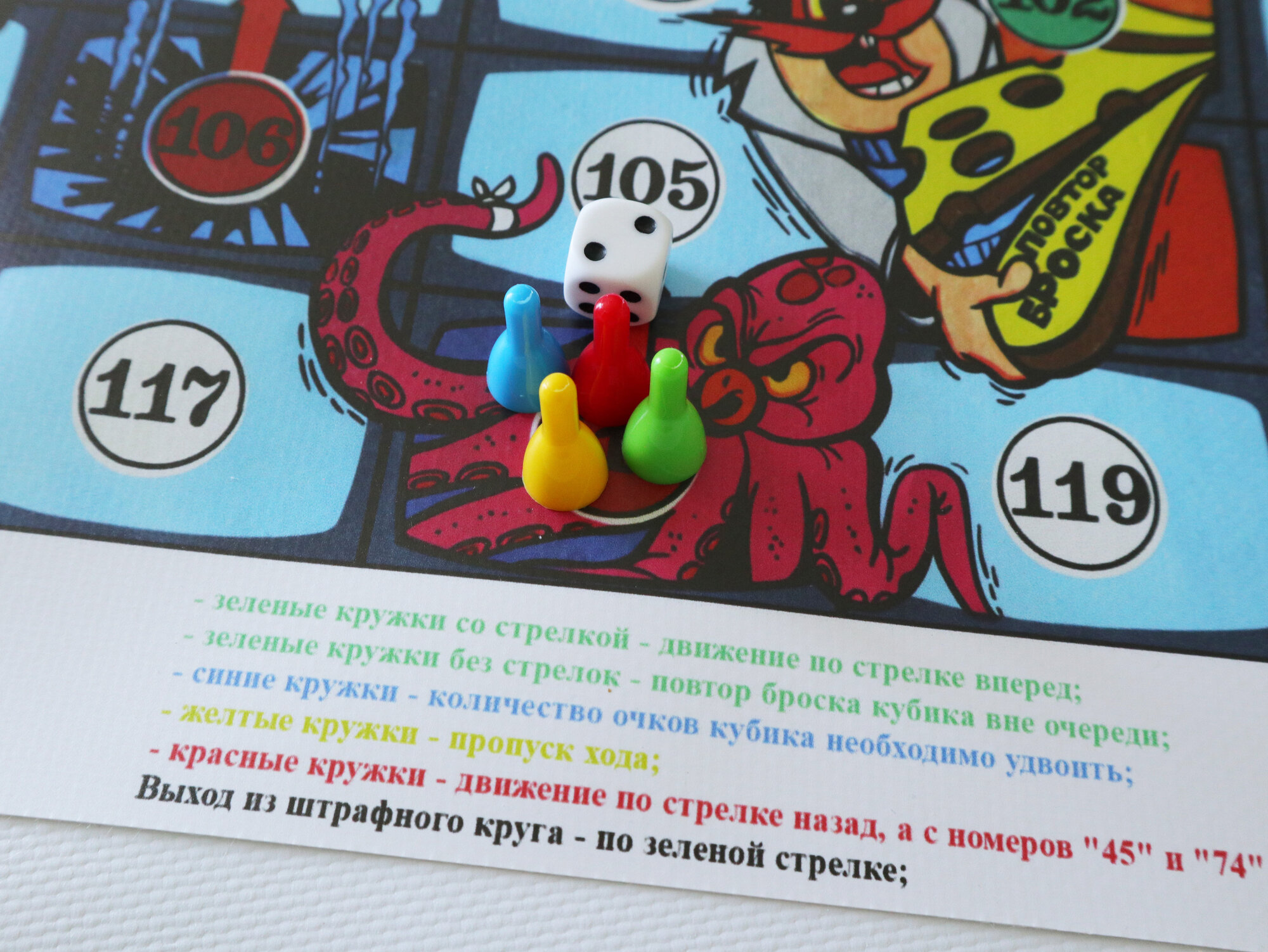 | Комплектация | настольная игра, кубик, 4 фишки, тубус для хранения |
