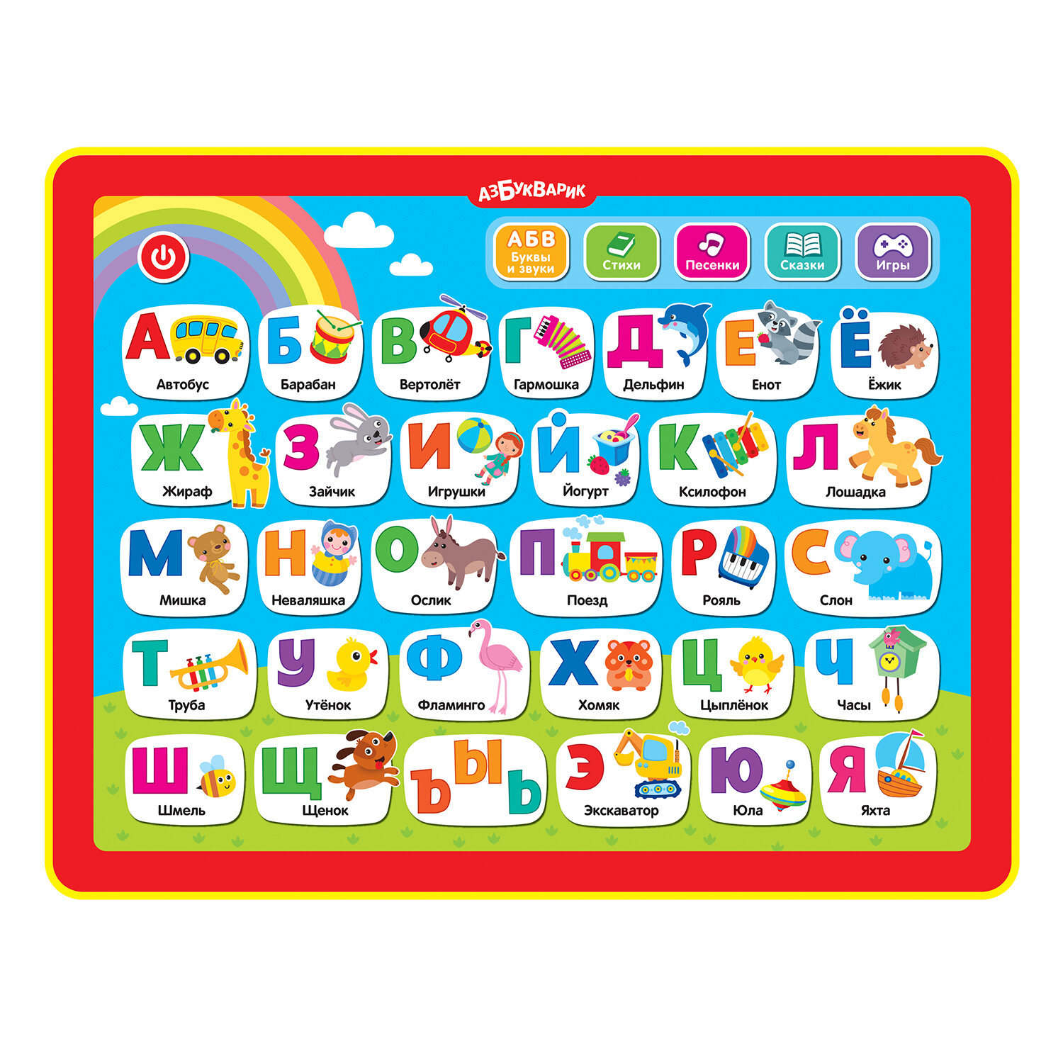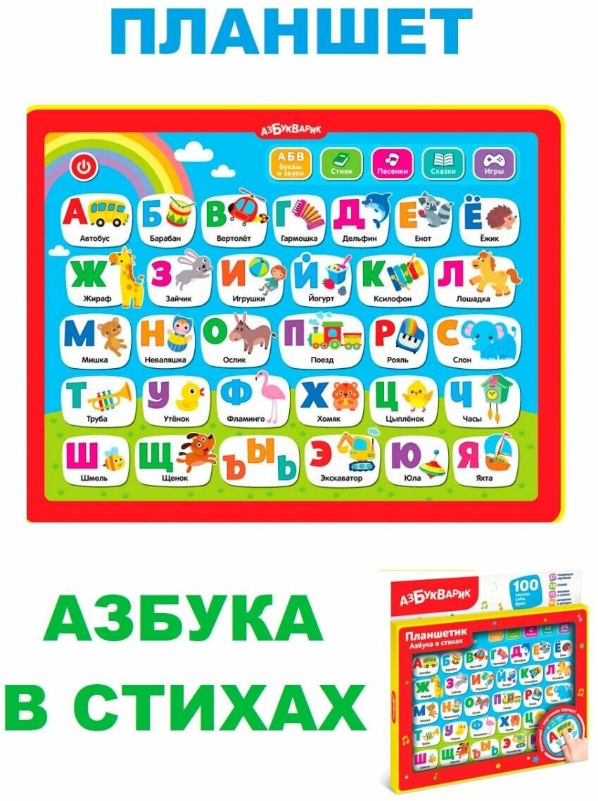 Интерактивная игрушка Азбукварик Планшет Азбука в стихах красный интересное: