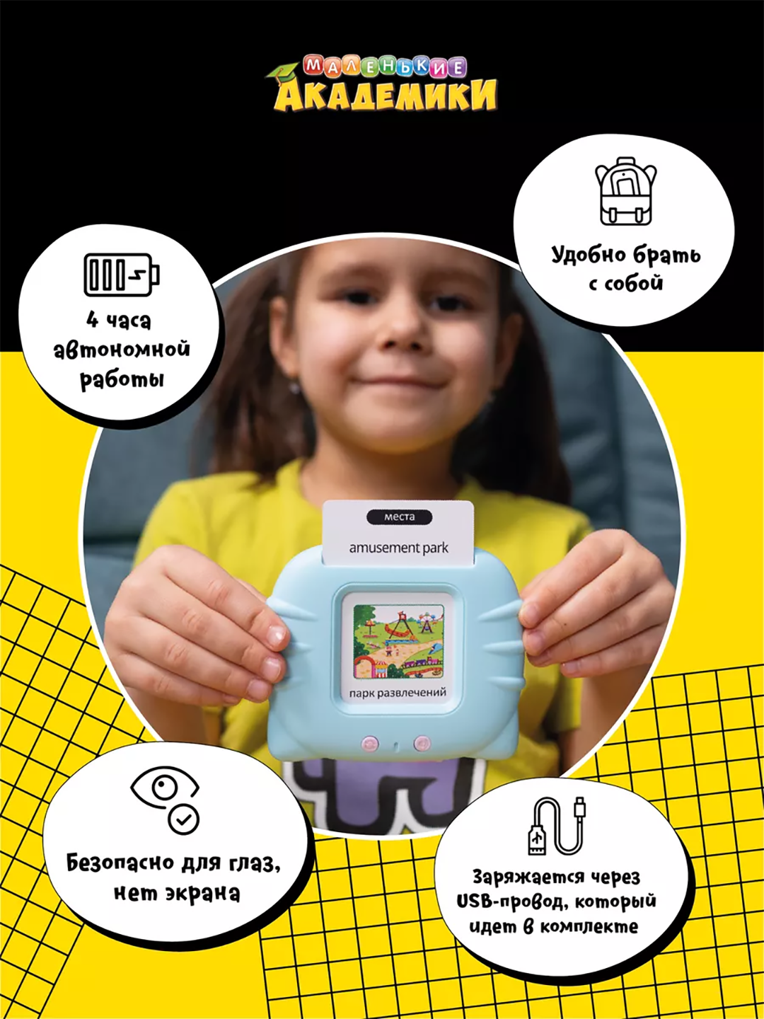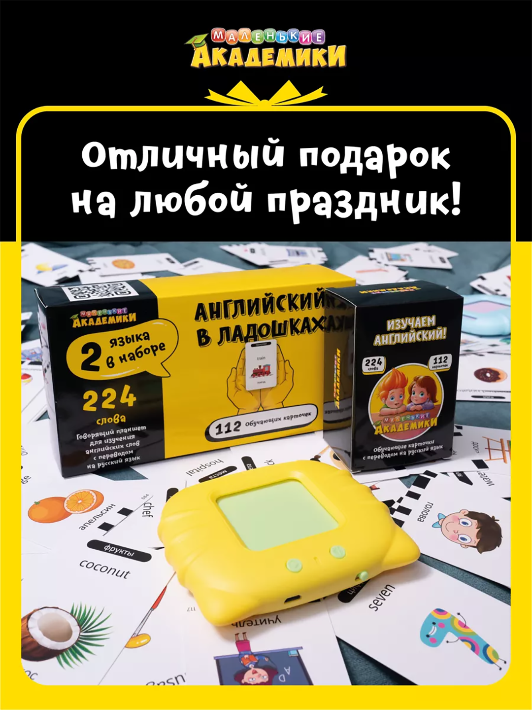 Обучающий планшет юнилайн, с карточками, на английском языке, для детей от 3 до 8 лет интересное: