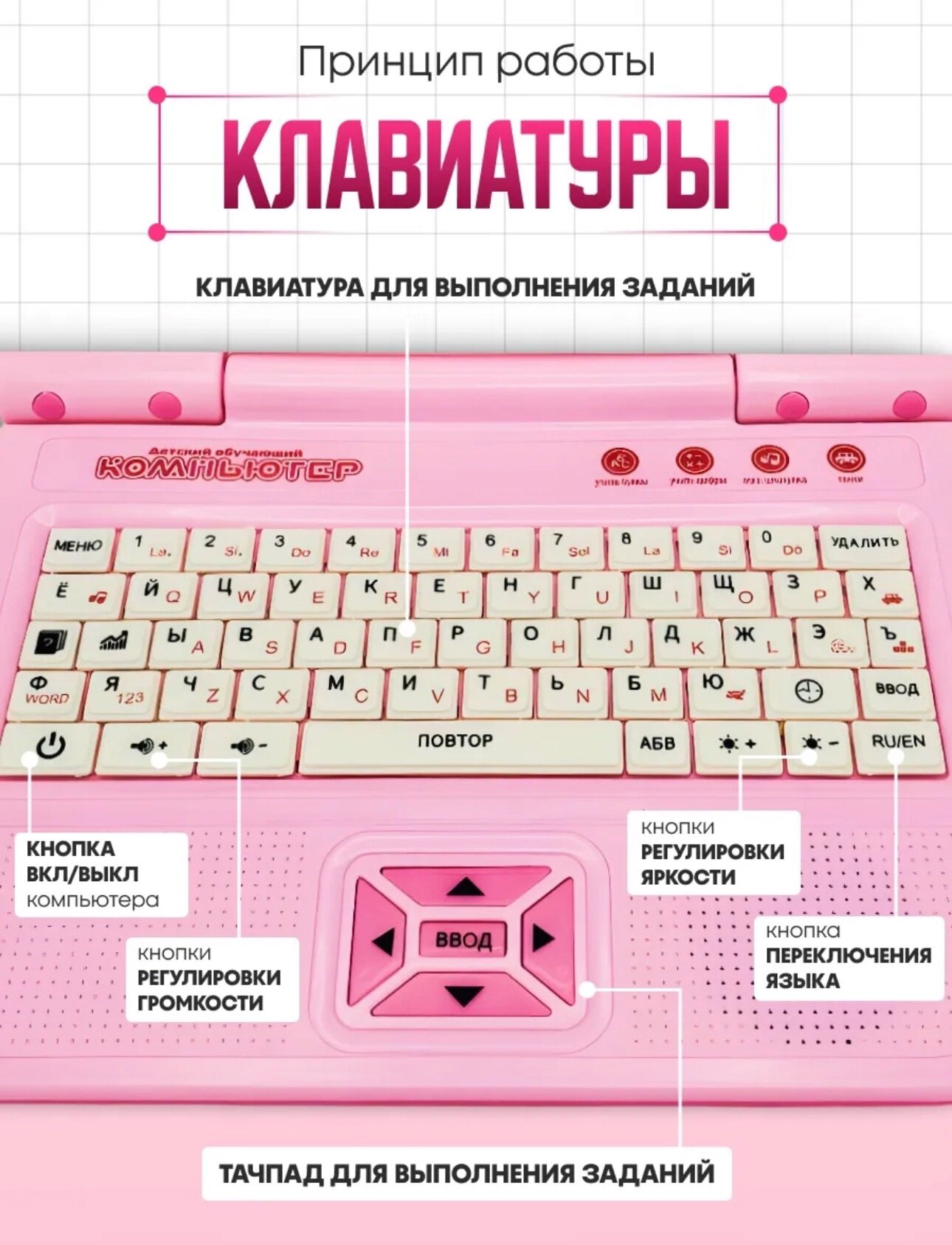 Ноутбук с мышкой для детей, обучающий, 35 развивающих программ, розовый интересное: