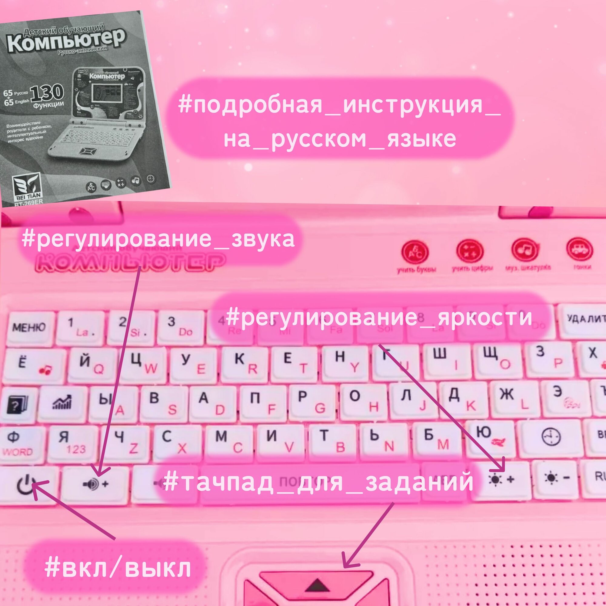 Ниже Вы можете прочитать отзывы на Детский обучающий ноутбук с мышкой 130 функций, ознакомится с подробными характеристиками, посмотреть интересные обзоры и фотографии на Детский обучающий ноутбук с мышкой 130 функций.