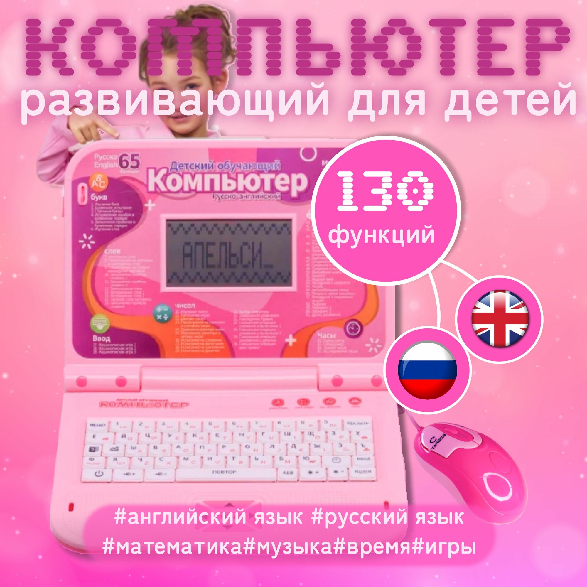 Детский обучающий ноутбук с мышкой 130 функций интересное:
