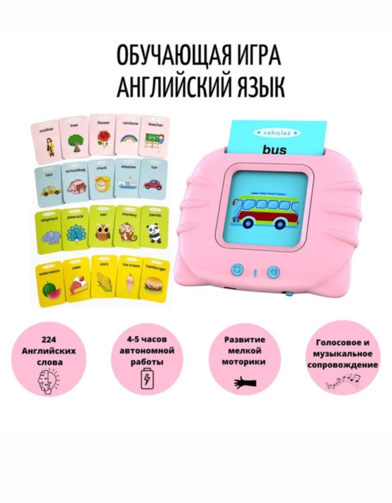 Развивающий детский планшет "Говоруша" для изучения английского языка, розовый интересное: