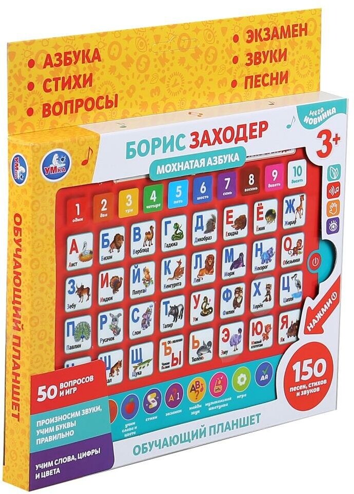 Сенсорный планшет Заходер Борис мохнатая азбука, 150+песен, стихов, звуков УМка HX82015-R21 интересное: