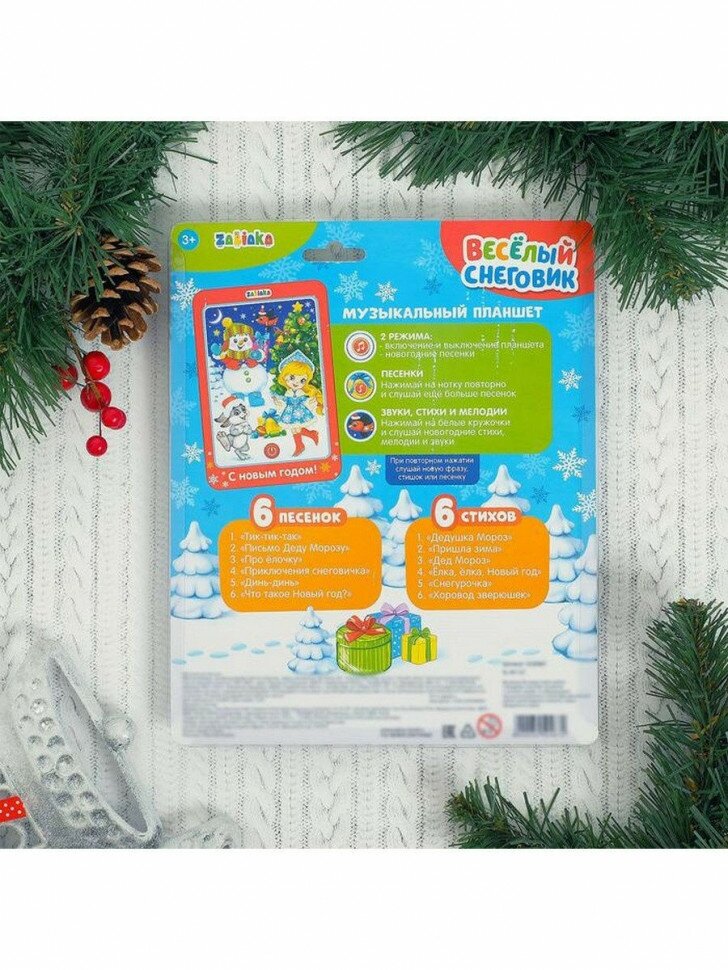 ZABIAKA Музыкальный планшет «Весёлый снеговик», звуковые эффекты, работает от батареек интересное: