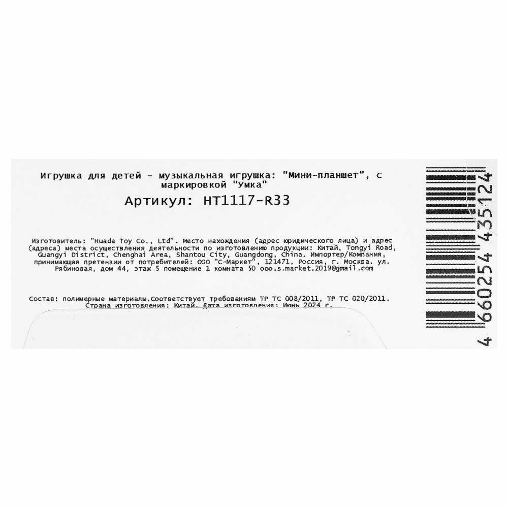 Обучающий планшетик "Сказочки" 40+ стихов, мелодий и звуков. УМка HT1117-R33 интересное: