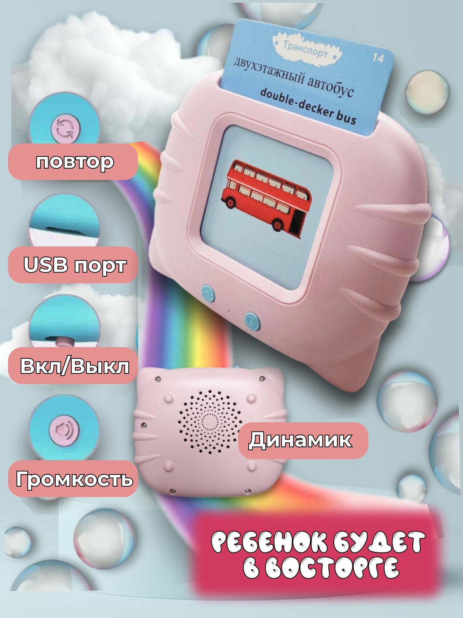 Детский планшет, для девочек, розовый, с карточками, интерактивный, обучающий, от 1 г, в подарочной упаковке интересное: