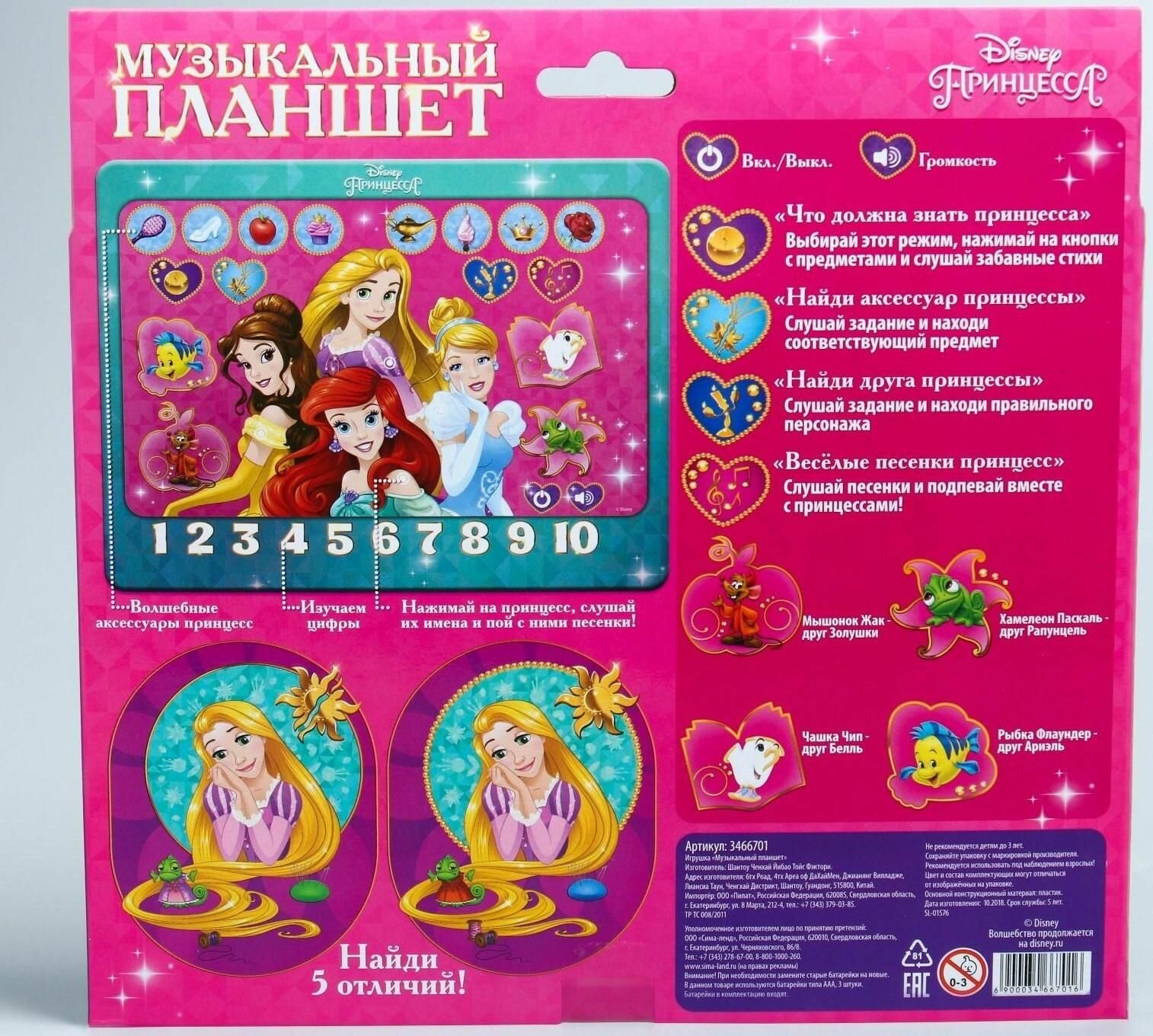 Ниже Вы можете прочитать отзывы на Планшет Принцессы , звук, батарейки, ознакомится с подробными характеристиками, посмотреть интересные обзоры и фотографии на Планшет Принцессы , звук, батарейки.