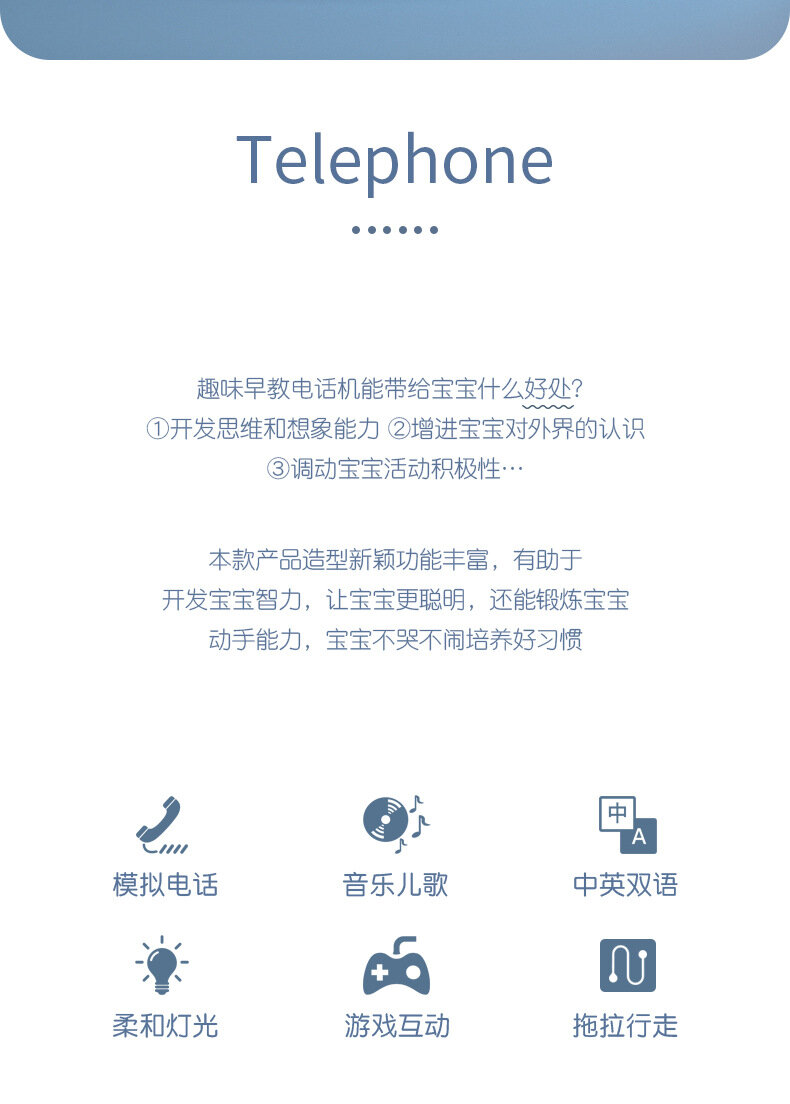 Машина для обучения детей 6827, имитация стационарного телефона, синий цвет
