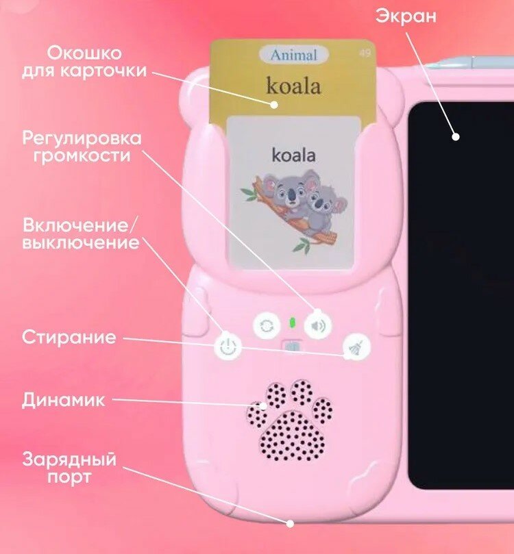 Купить Планшет детский, Планшет для рисования детский, 112 карточек, 12 тем, 224 аудиокарточки, Цвет - Розовый